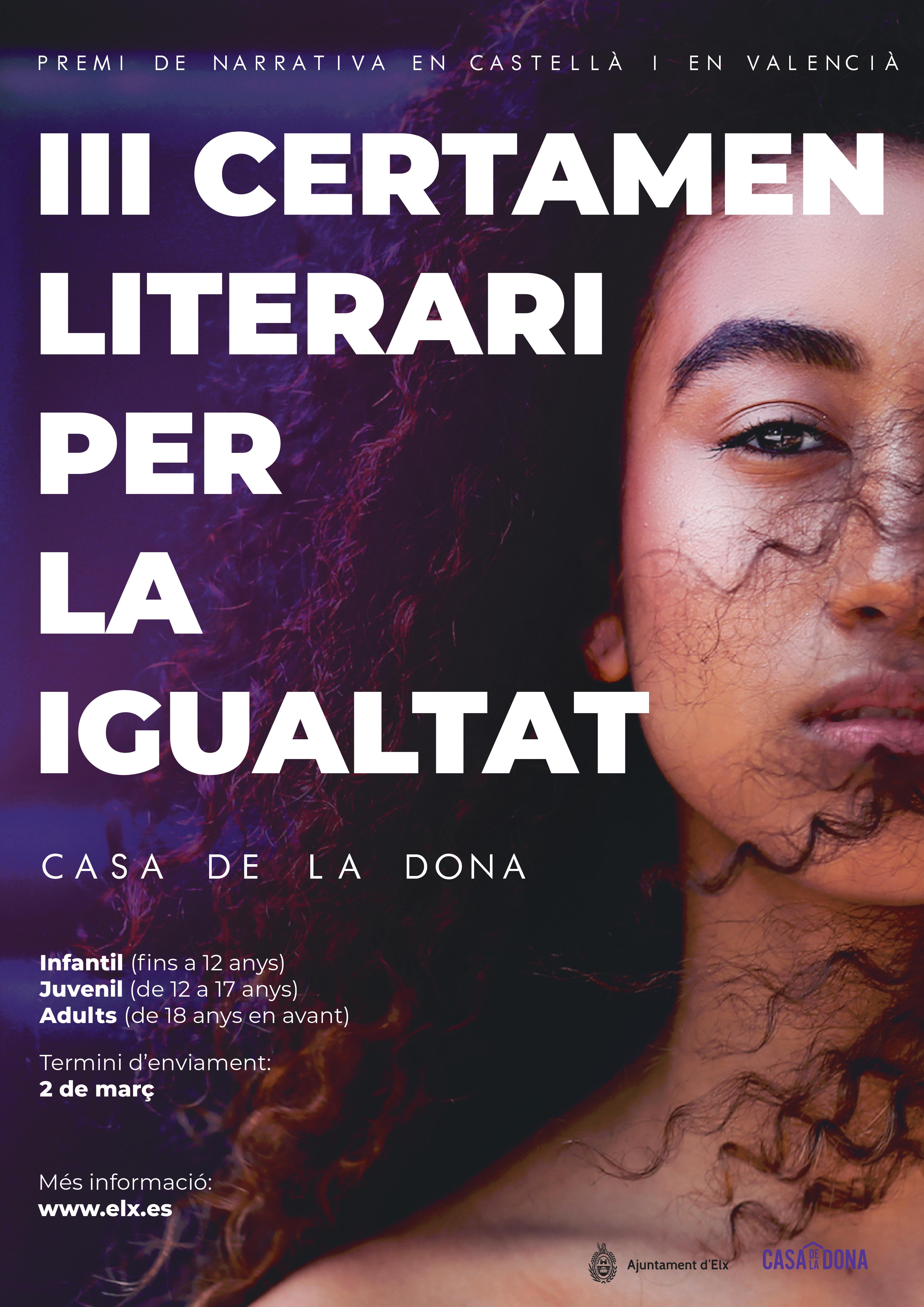 La tercera edición del Certamen literario para la Igualdad “Casa de la Dona”, es una iniciativa de la Concejalía de Igualdad del Ayuntamiento de Elche.
