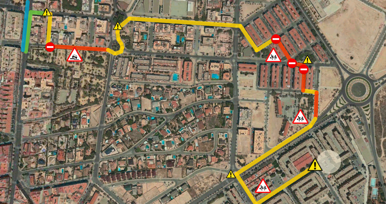 En ese momento, la UTE de Policía Local inició la persecución del turismo dando aviso al resto de patrullas por radio. Desde ese punto accedió a calle Banyeres en contra dirección, debiendo subirse a la acera para evitar el tráfico en la vía, en cuya maniobra reventó una de las ruedas. Pese a esto y a la incorporación de unidades de Policía Nacional que intentaron cortarle el paso, el conductor efectuó con notable riesgo una maniobra evasiva con la que evadió el corte. Tras ello llegó a barrio de San Antón, continuando con rutas contra sentido de la marcha donde varios peatones tuvieron que apartarse para evitar atropellos. Con la incorporación de más patrullas ambos Cuerpos y ante el interés de no agravar la situación se fue estrechando el cerco, viendo su única salida posible hacia el barrio de Los Palmerales, rebasando fases semáforicas en rojo y obligando a peatones y conductores a hacerse a un lado hasta acceder a calle Morera. En este punto, tras coger calle Taronger, el vehículo no puede avanzar más y se detuvo al final de la misma.