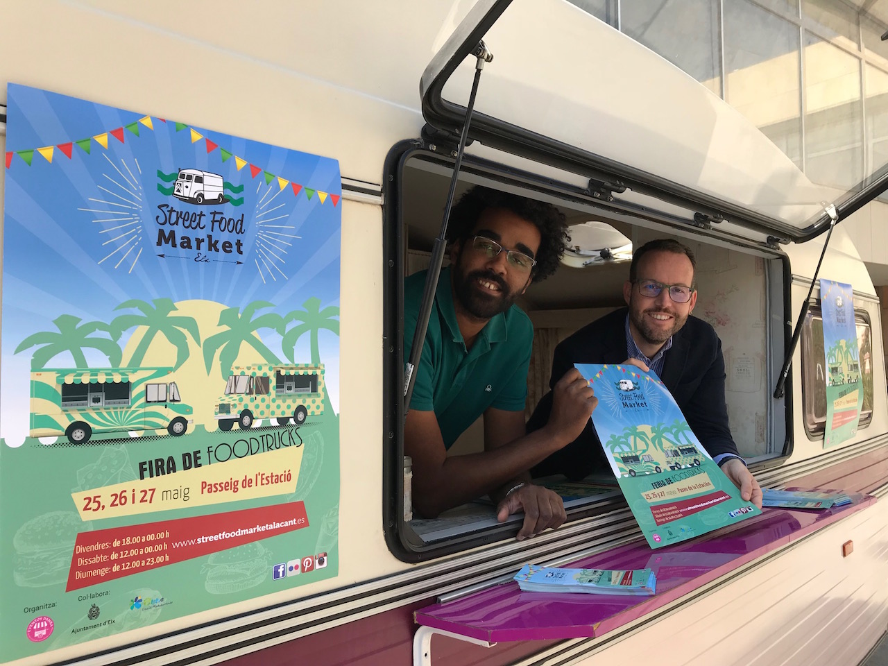 La tercera edición del evento Elx Street Food Market contará, los próximos días 25, 26 y 27, en el Paseo de la Estación, con 22 camiones, furgonetas, caravanas, tenderetes y carritos con estética vintage que ofrecerán una amplia oferta gastronómica acompañada de actividades socioculturales, según han informado el concejal de Promoción Económica, Héctor Díez, y el organizador del evento, Amadou Sow.
