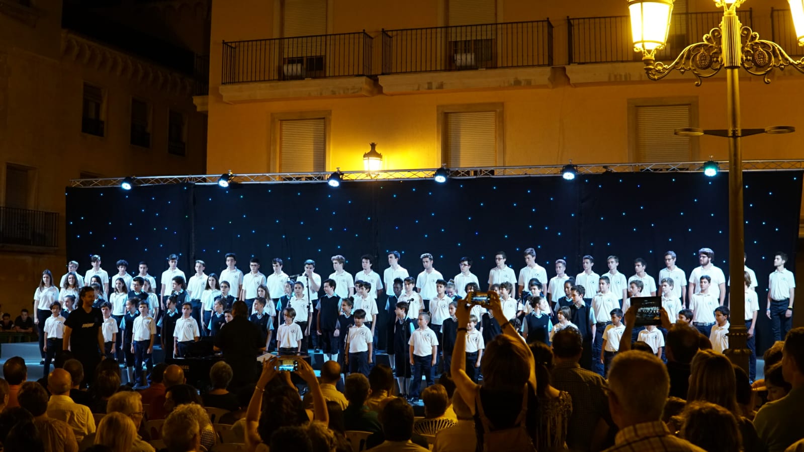 Cerca de 1.500 personas han abarrotado la Plaza del Congreso Eucarístico para ver a “Las voces del coro”, compuesto por Los niños de Les PetitsChanteurs de Saint Marc de Lyon y la Escolanía y Coro Juvenil del Misterid’Elx. Entre los asistentes estaba el alcalde de Elche, Carlos González, la edil de Turismo, Mireia Mollà, y otros miembros del equipo de gobierno.