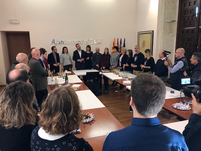 El alcalde de Elche, Carlos González, y los miembros de la Corporación Municipal han celebrado el tradicional brindis navideño con los periodistas que habitualmente cubren la información municipal. Un acto que ha aprovechado el alcalde para, en nombre del equipo de gobierno, agradecer la labor que realizan día a día y destacar la importancia que los medios de comunicación tienen para el desarrollo de nuestro sistema democrático.