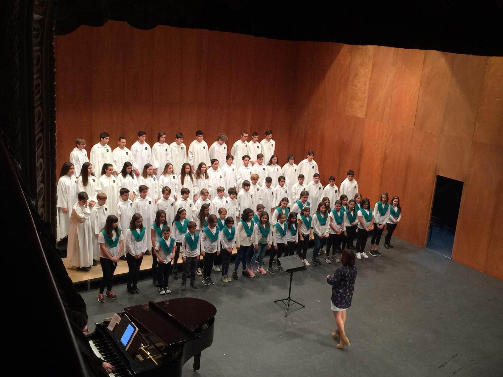 El Gran Teatre ha acogido este miércoles, día 10 de abril, el original concierto «Cantar nos une» en el que han participado alumnos de 15 centros de la ciudad, Santa Pola y Novelda, quienes han tenido la oportunidad de cantar junto a la Escolanía del Misteri.