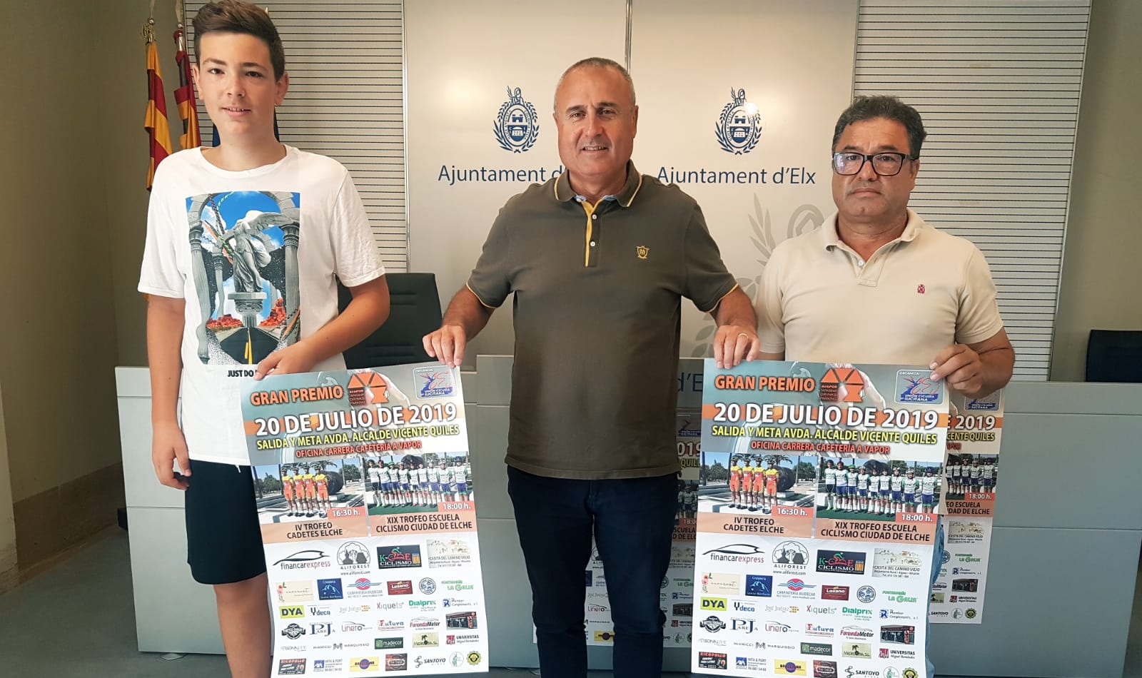 El ciclismo base tiene una cita en Elche el próximo sábado 20 de julio. Así lo ha manifestado el concejal de Deportes, Vicente Alberola, que ha presentado esta mañana el Gran Premio Avapor, acompañado por el presidente de la Unión Ciclista Ilicitana, Rafael Rodríguez, y del cadete y miembro del club Ibai Ezpeleta.