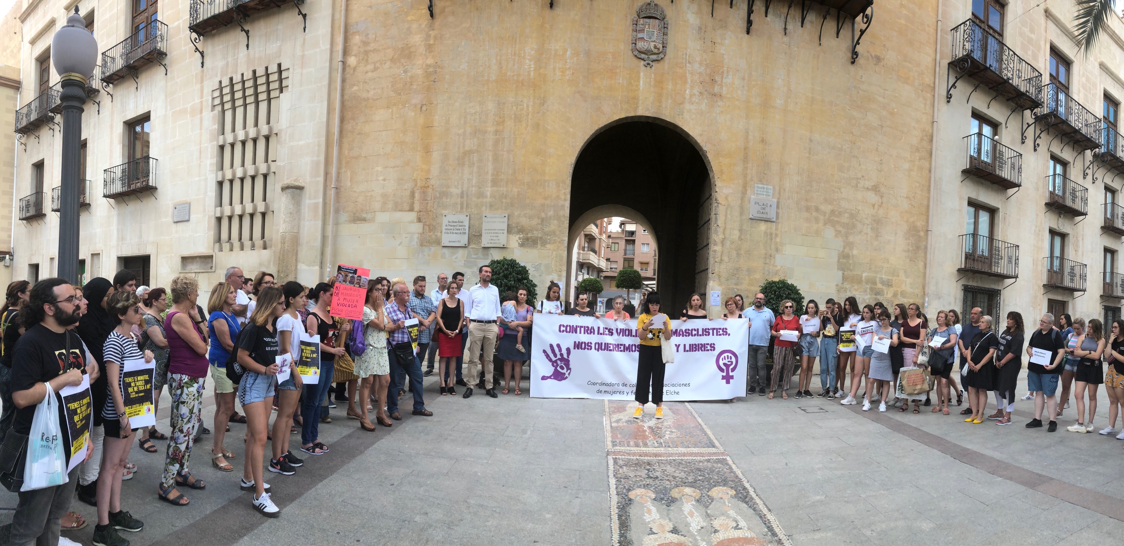 El alcalde de Elche, Carlos González, acompañado de miembros del Equipo de Gobierno, ha secundado la concentración convocada por el Movimiento Feminista de Elche en la plaça de Baix en el marco de la movilización estatal impulsada por la Coordinadora 8M “para mostrar nuestro apoyo a la joven agredida por la manada de Manresa, una menor de 14 años que fue violada por seis hombres mientras un séptimo se masturbaba mirando”, tal como expresó la portavoz que leyó un comunicado.