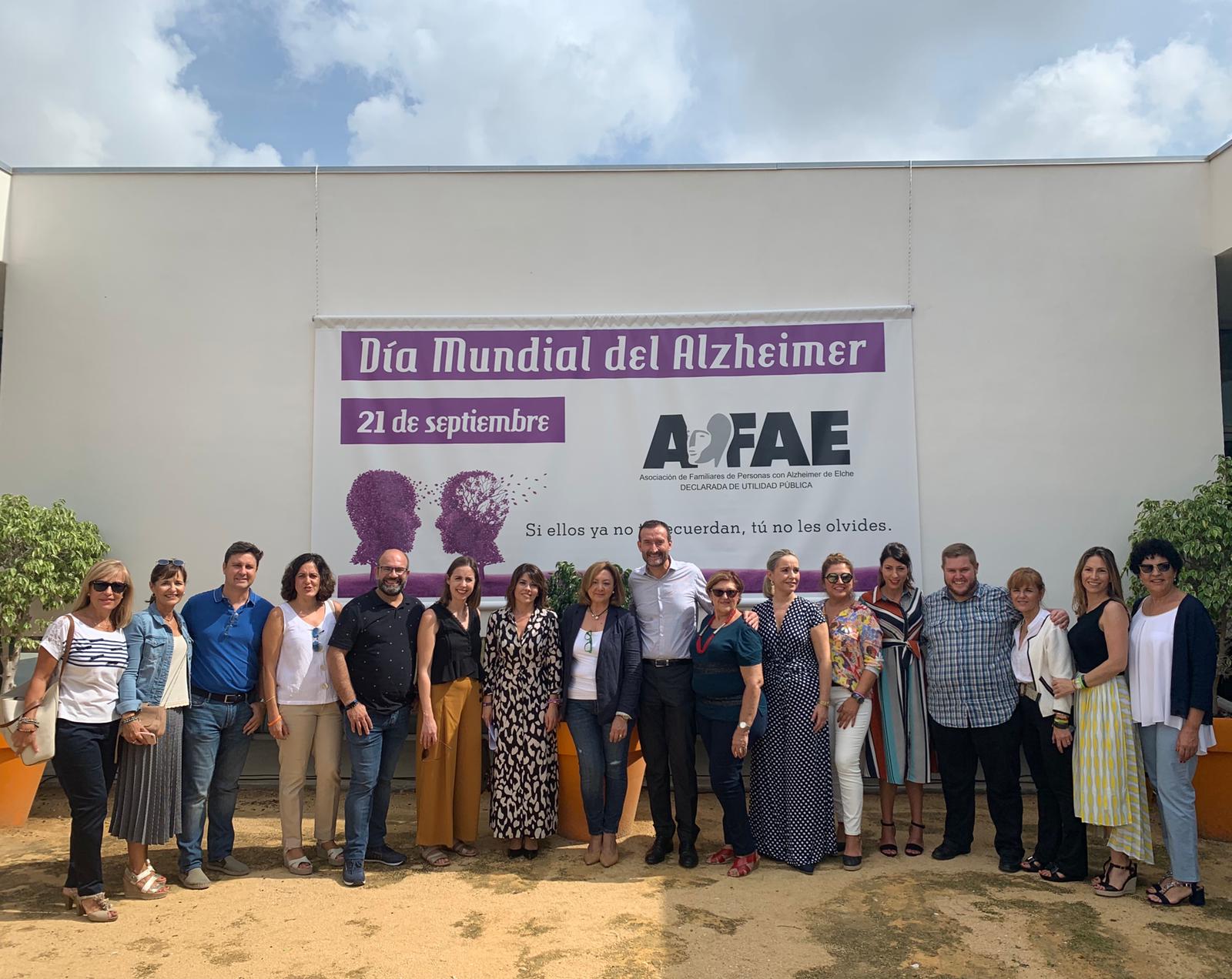 El alcalde de la ciudad, Carlos González, acompañado de los concejales de Sanidad, Mariola Galiana; Igualdad y Derechos Sociales, Mariano Valera; Movilidad, Esther Díez; y Comercio, Felip Sánchez, ha apoyado esta mañana a la Asociación de Familiares de Personas con Alzheimer de Elche (AFAE) en su jornada de lucha contra esta enfermedad.