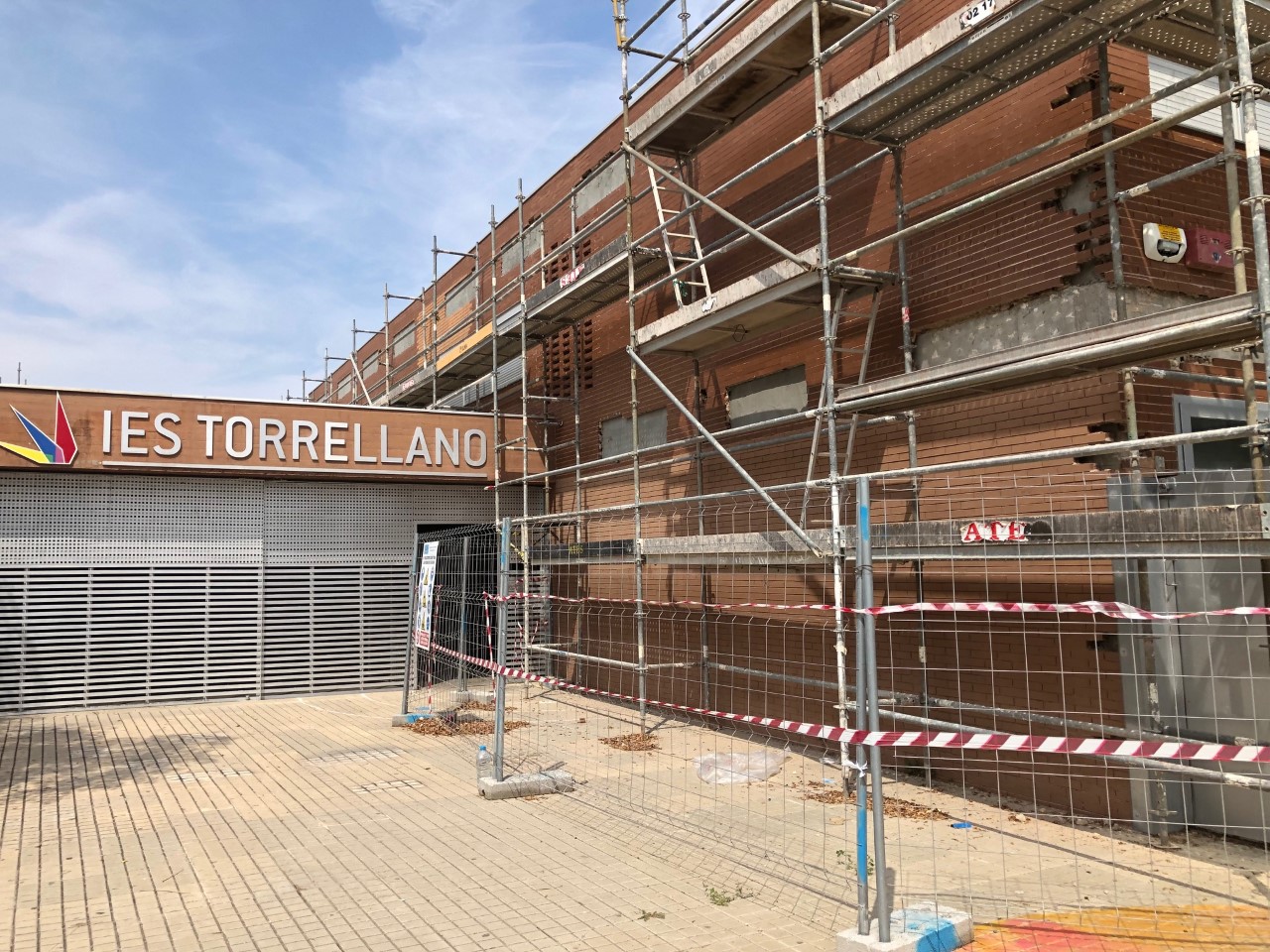 El concurso de acreedores de la empresa adjudicataria de las obras de remodelación del edificio ha llevado a la paralización de las mismas y ha obligado a reforzar el vallado de seguridad y a instalar túneles de protección en entradas y salidas del centro para garantizar la seguridad del alumnado y del personal que trabaja en el instituto.
