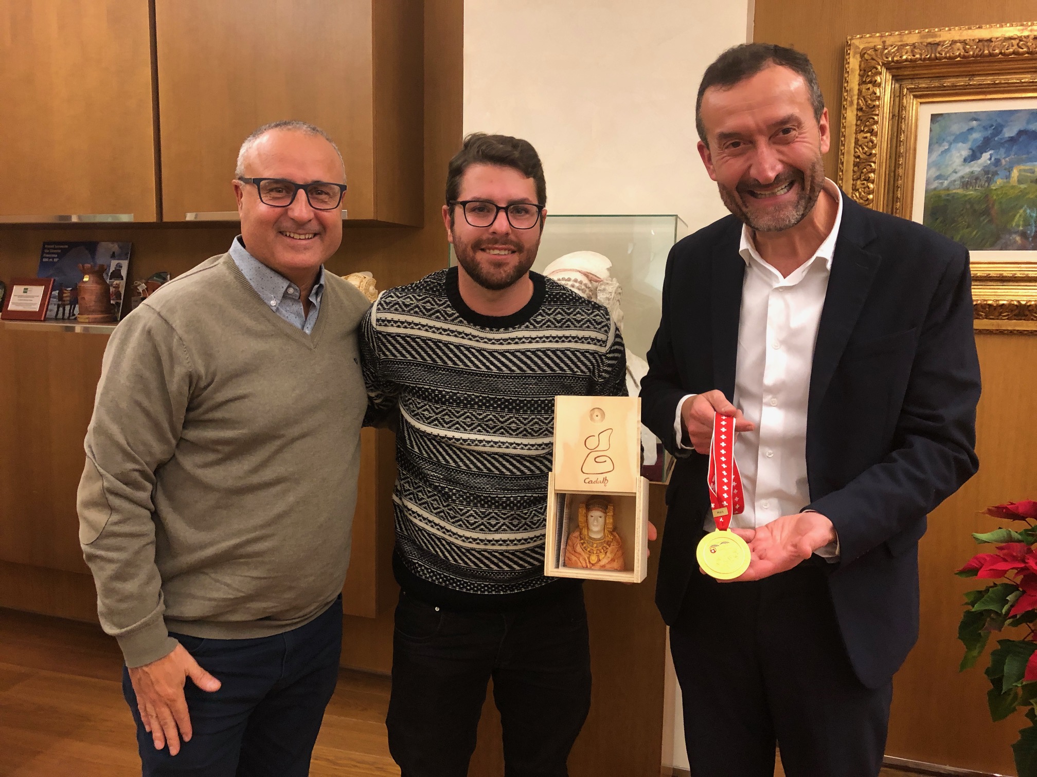 El alcalde de Elche, Carlos González, y el concejal de Deportes, Vicente Alberola, han recibido en el Ayuntamiento al ilicitano Antonio Lara Martínez, campeón del mundo de fútbol sala para sordos. Lara se ha proclamado campeón con la selección española en Winterthur (Suiza) el pasado mes de noviembre. El deportista tiene 28 años y juega en el equipo de Cds Granada. Tanto el alcalde como el concejal se han interesado por su trayectoria deportiva, le han animado a seguir adelante y le han obsequiado con una Dama de Elche policromada y un libro sobre la historia del deporte ilicitano. Antonio Lara les ha mostrado la medalla cosechada y ha agradecido este reconocimiento oficial.