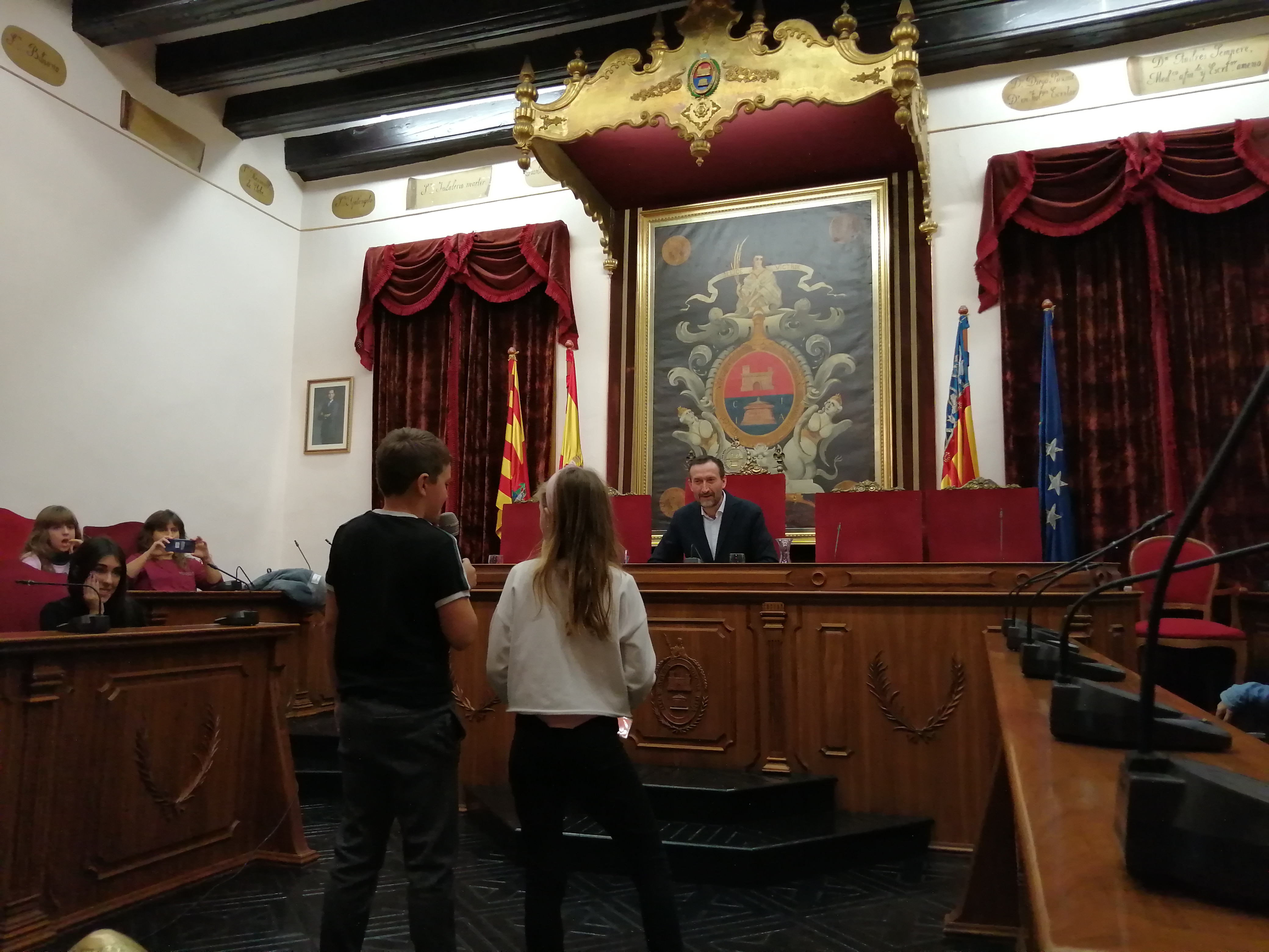 El alcalde y la concejala de Educación han recibido en el Salón de Plenos del Ayuntamiento a los alumnos de 4º de primaria del CEIP El Pla para conocer la campaña #acenTÚate que están desarrollando durante el curso.