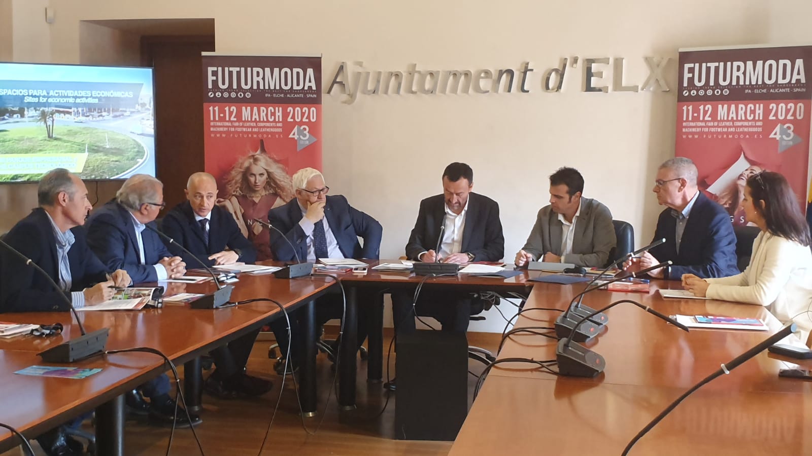 El alcalde, Carlos González, ha firmado dos convenios con el sector de los componentes del calzado, impulsado por la concejalía de Promoción Económica; uno de ellos dotado de 22.000 euros y dirigido a que las empresas ilicitanas puedan participar en la próxima edición de Futurmoda, que se celebrará en la Institución Ferial Alicantina (IFA) los días 11 y 12 de este mes; y otro de 12.000 euros para desarrollar a lo largo de este año acciones de innovación, promoción, formación y difusión desde la Asociación Española de Empresas de Componentes para el Calzado (AEC). Así lo ha explicado en rueda de prensa el alcalde junto al concejal de Promoción Económica, Carles Molina, el presidente de AEC, Manuel Román, el presidente de Futurmoda, José Antonio Ibarra y el director de AEC, Álvaro Sánchez.