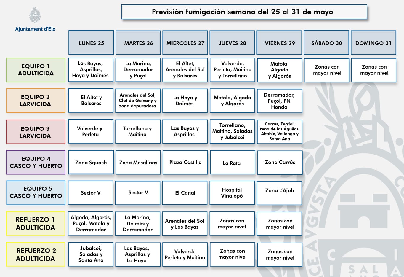 Por lo que respecta al plan de fumigación de la semana pasada no ha habido que realizar cambios importantes en relación con las actuaciones previstas.