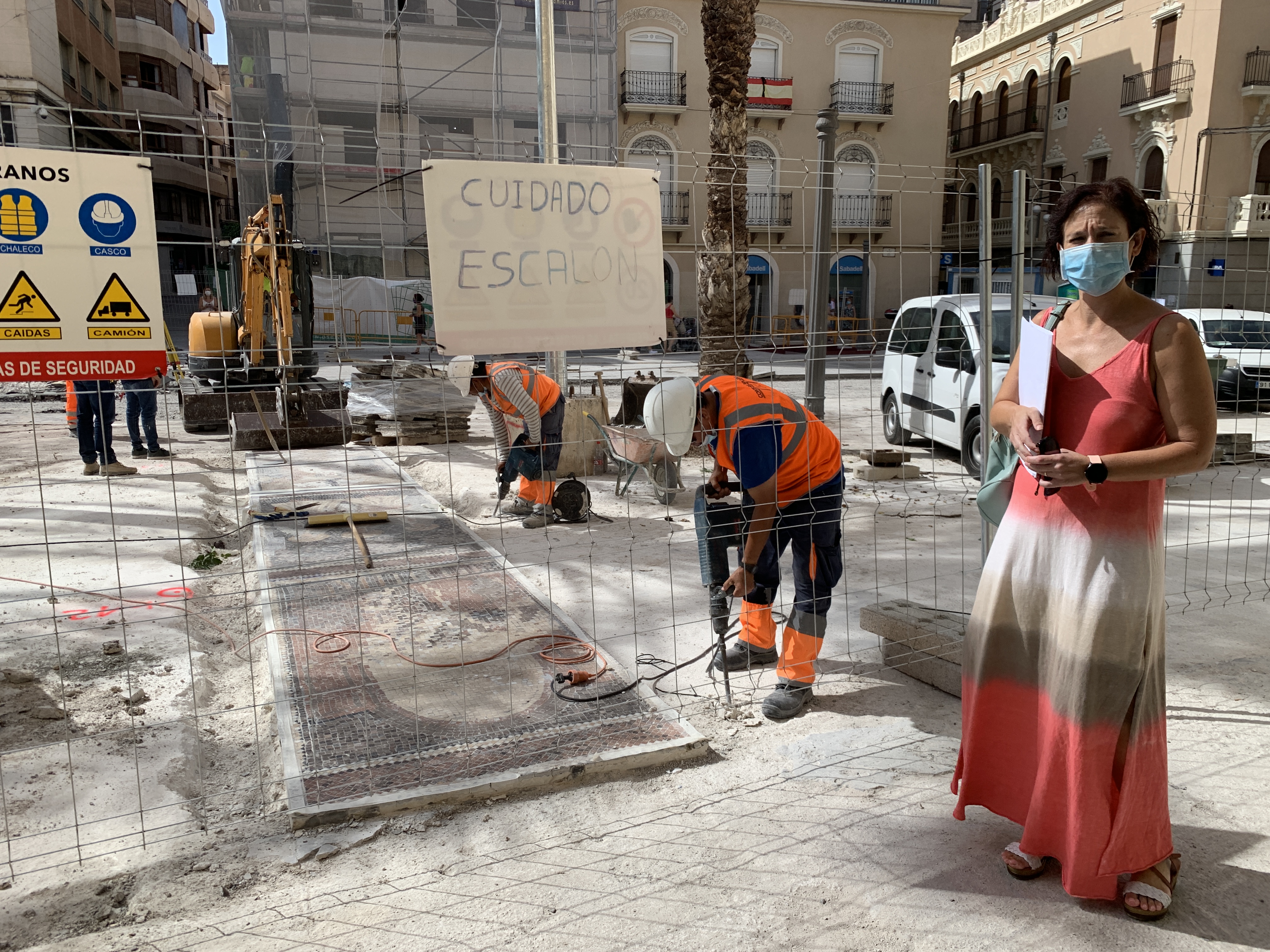 La concejala de Urbanismo, Ana Arabid, ha informado que ya ha comenzado la retirada de los mosaicos ubicados en la Plaça Baix inspirados en la obra de Sixto Marco en torno al Misteri d’Elx.