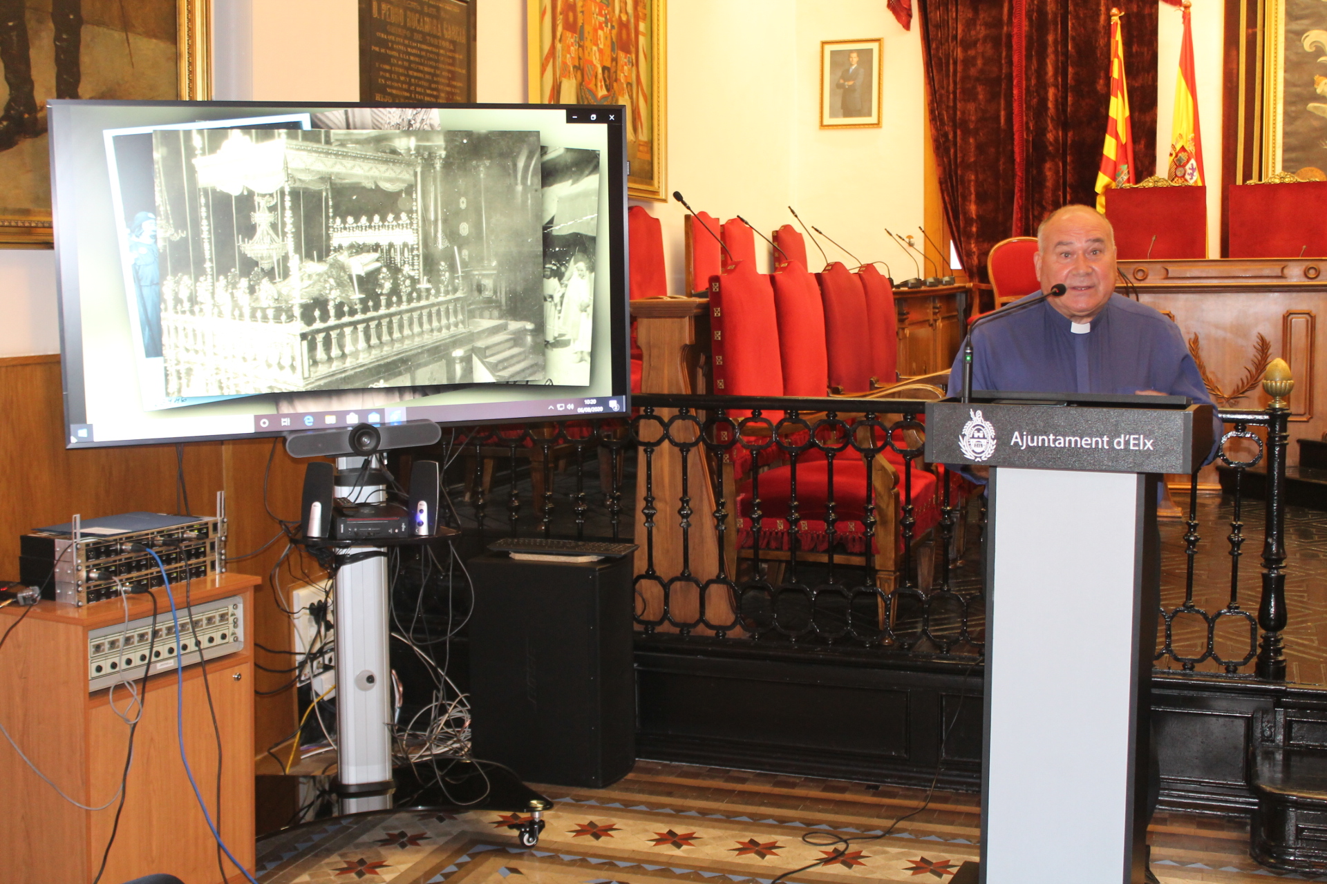 El Salón de Plenos ha acogido la presentación de la serie documental ‘En temps de festa’, la serie divulgativa de siete episodios rodados en HD, con imágenes en 4K, sobre los aspectos más desconocidos y sorprendentes del drama religioso y que ha sido producida, guionizada y dirigida por el realizador ilicitano Pablo Mas, también responsable de la Cátedra Misteri d’Elx y artífice igualmente del cortometraje ‘Elx en festa’. Al acto, han asistido el propio autor además del alcalde de Elche, Carlos González; el presidente ejecutivo y la vicepresidenta del Patronato, Francisco Borja y Mayte Botella; y el vicario episcopal de la basílica de Santa María, José Luis Valero.