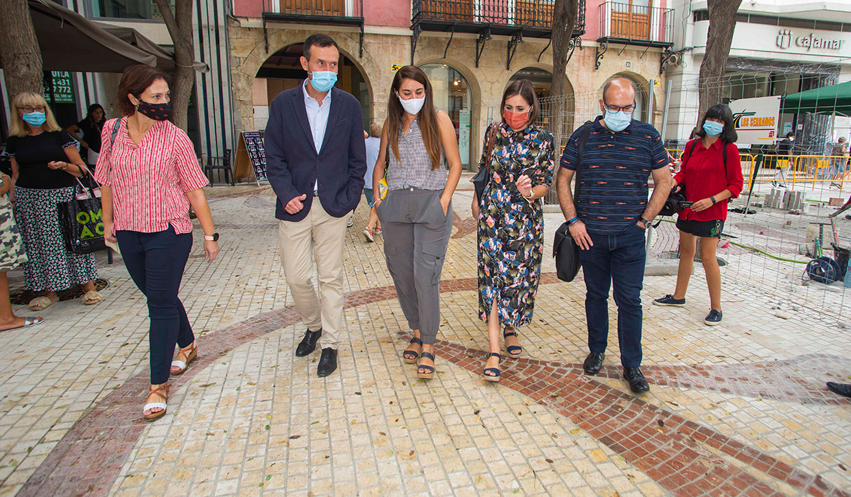 Mireia Mollà junto al alcalde, Carlos González, la concejala de Urbanismo, Ana Arabid, la edil de Medio Ambiente, Esther Díez, y el concejal de Comercio, Felip Sànchez, visita las obras de dicha actuación