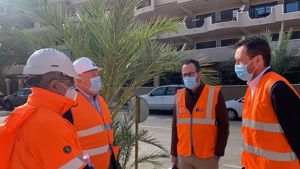 El alcalde de Elche, Carlos González, acompañado del concejal de Agua, Héctor Díez, y el gerente de Aigües d’Elx, Javier Prieto, visita las obras de dicha actuación que forma parte del Plan de Pedanías y representa una inversión de un millón de euros