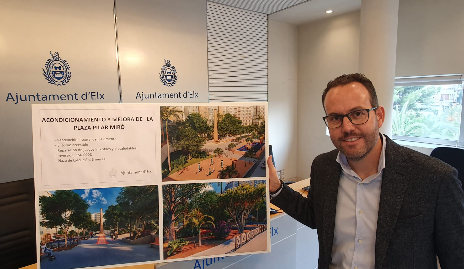 El Ayuntamiento de Elche continúa con su proceso de modernización y mejora en diversas zonas del municipio. En esta ocasión, el concejal del área, Héctor Díez, ha presentado una nueva intervención que tendrá lugar en la antigua Plaza Pilar Miró del barrio de Carrús. Un espacio de mucho uso por parte de los ciudadanos que con el paso del tiempo ha quedado desactualizado tanto en accesibilidad como en integración paisajística. Según ha señalado Díez “esta actuación forma parte de un ambicioso plan, puesto en marcha por el Consistorio, con una inversión de dos millones de euros para mejorar el espacio público tanto en barrios como en pedanías”.