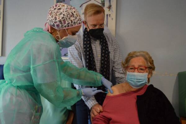 La campaña ha comenzado hoy a las 9:30 de la mañana con la vacunación de Diego Romero Tárraga de 75 años, y de Manuela Bernabeu Valero de 84 años. residentes del centro.