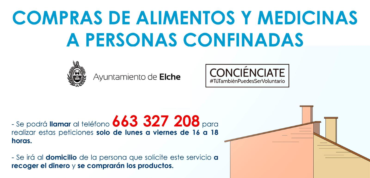 El Ayuntamiento de Elche y la asociación Conciénciate han puesto en marcha una nueva actividad para hacer frente a los efectos del coronavirus. Así lo ha anunciado el edil de Bienestar Social, Mariano Valera, quien ha aclarado que esta iniciativa consistirá en llevar alimentos y medicinas a personas mayores que no puedan salir de sus casas y a familias que se encuentren confinadas, por tener COVID o haber sido contacto estrecho de personas infectadas.