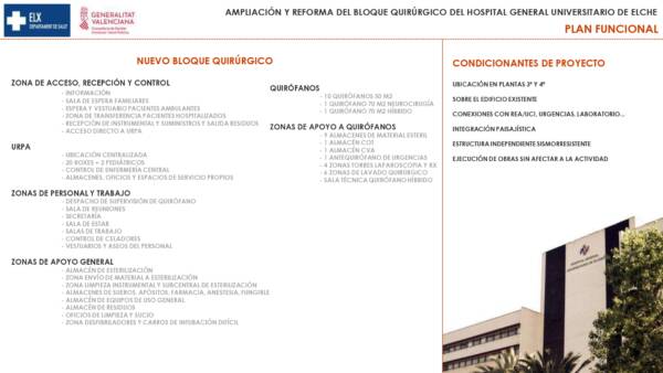 “La construcción del nuevo bloque quirúrgico cuenta con un presupuesto de más de once millones de euros que se suman a los más de 14 que la conselleria de Sanitat ya ha invertido en la reforma y modernización del Hospital General de Elche”, ha declarado el alcalde quien se ha agradecido Ximo Puig la apuesta del Consell por la mejora de la sanidad pública en Elche. “Durante el anterior mandado y el presente, el Consell y el Ayuntamiento hemos abordado actuaciones de gran envergadura y otras menores en materia sanitaria. Es decir, a la vez que hemos reformado pequeños consultorios de las pedanías, se está llevando a cabo la reforma del Hospital General Universitario de Elche con una inversión de más de 25 millones de euros, lo que permite poner en el siglo XXI un hospital que estaba totalmente abandonado por los anteriores gobiernos”.