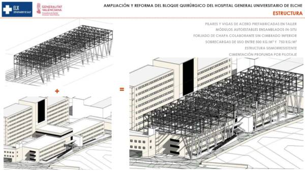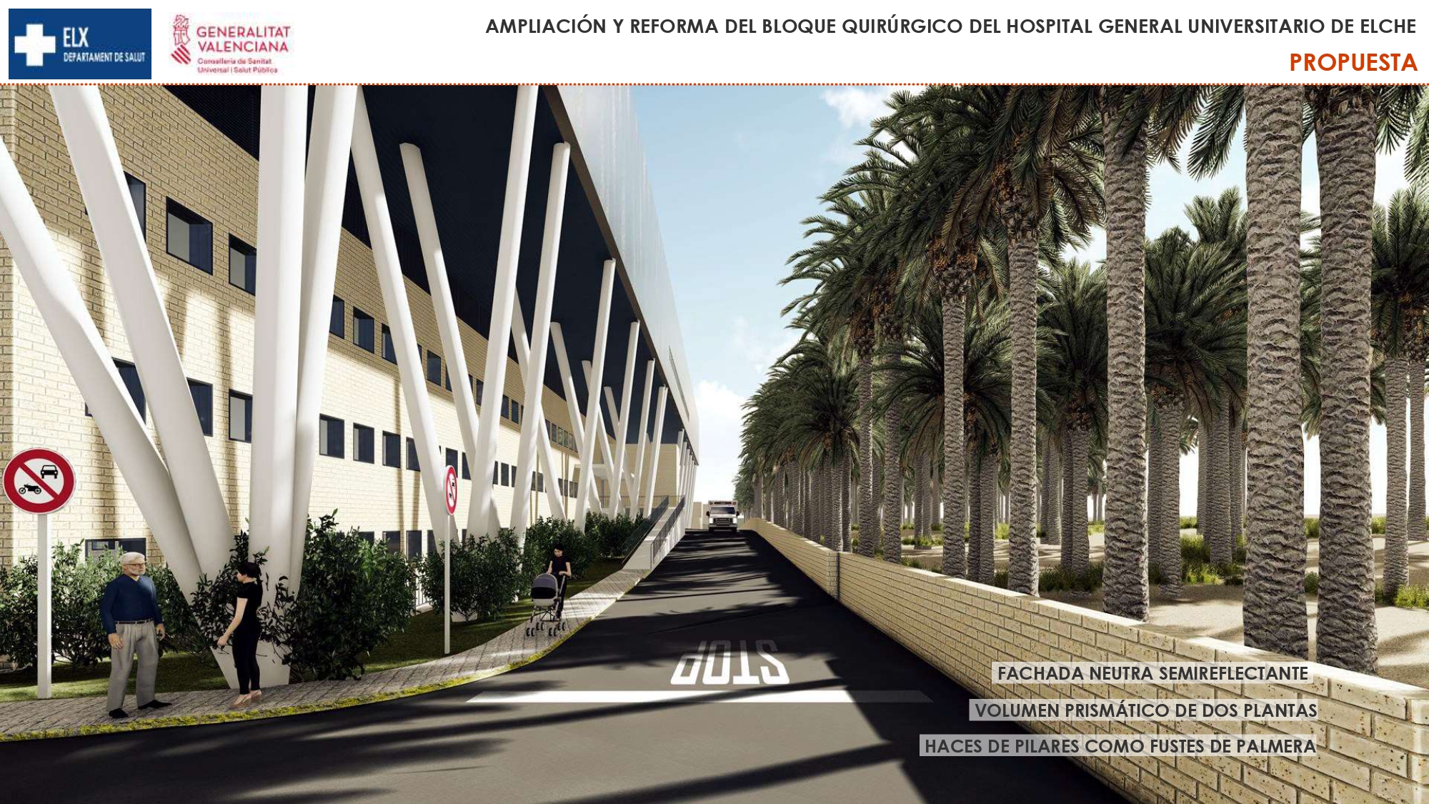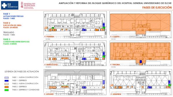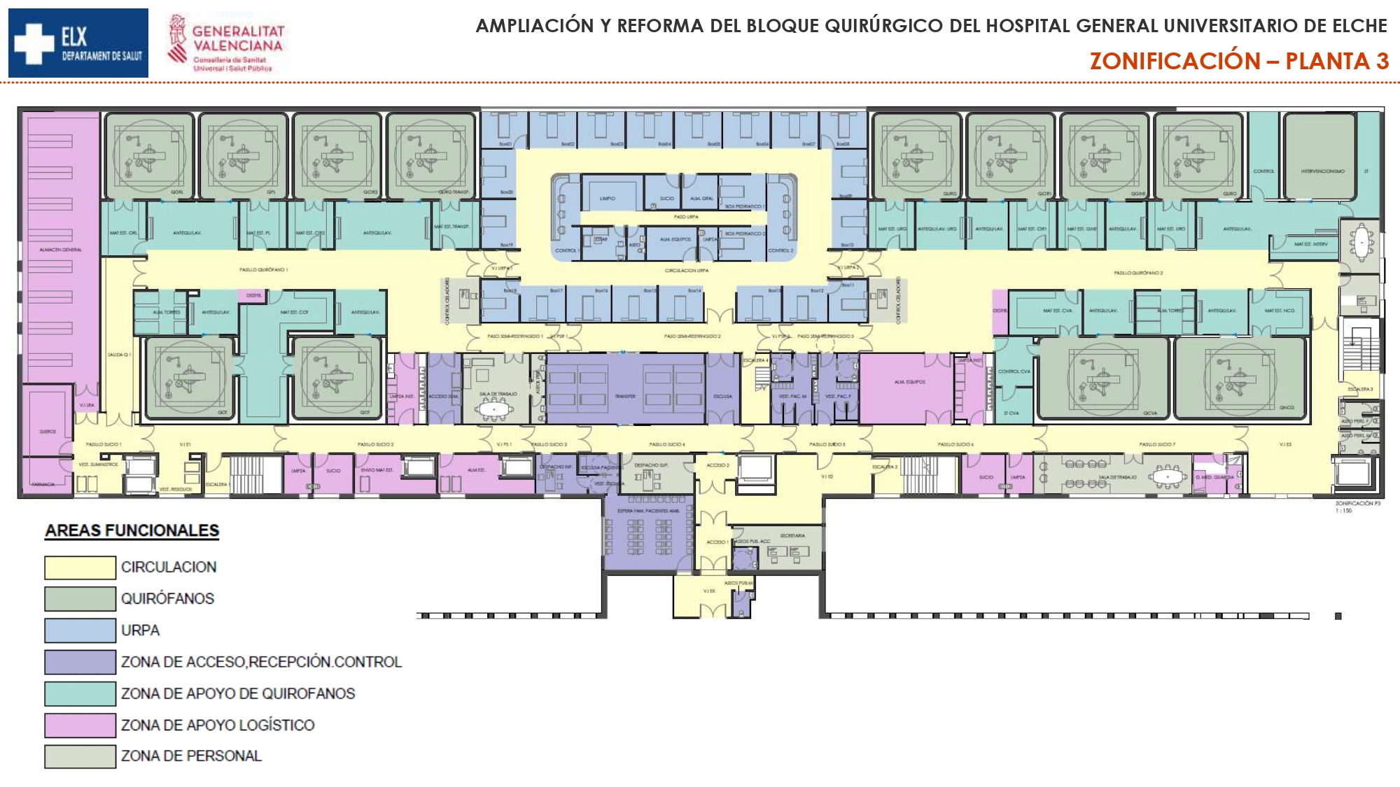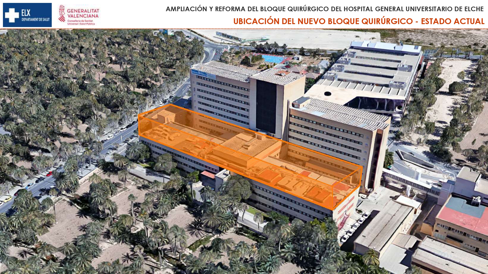 La obra que hoy comienza y cuyo final está previsto para el segundo semestre de 2023 contempla la ejecución de un nuevo volumen sobre el bloque norte existente. En este nuevo elemento, de dos plantas, se distribuye el nuevo Bloque Quirúrgico con trece quirófanos y todas sus áreas anexas.
