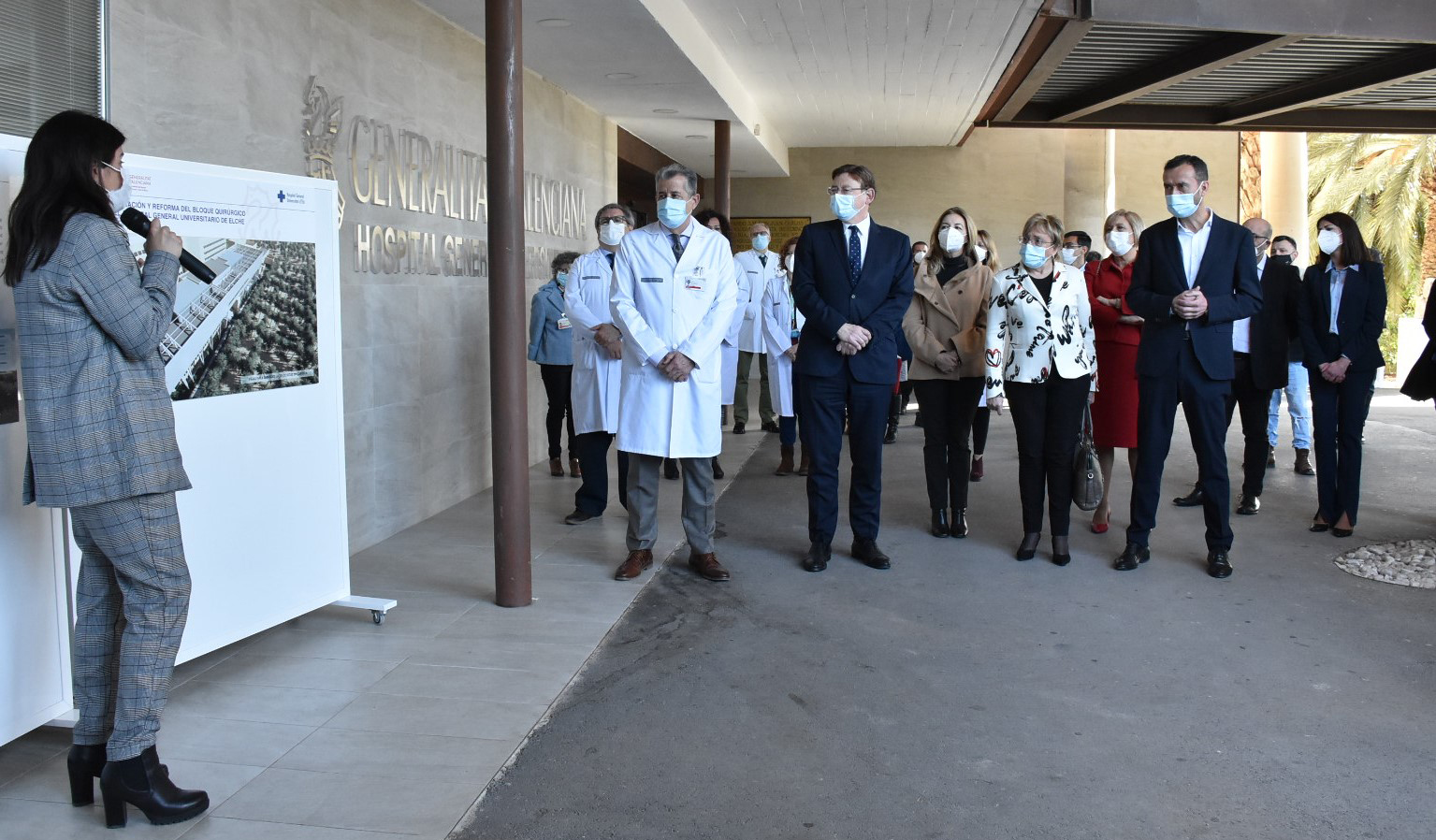 El president de la Generalitat, Ximo Puig, y la consellera de Sanitat, Ana Barceló, acompañados por el alcalde de Elche, Carlos González, y el director del centro hospitalario, Carlos Gosálbez, han asistido en Elche al inicio de las obras del nuevo bloque Quirúrgico del Hospital General. También han estado presentes en la visita la concejala de Sanidad, Mariola Galiana, el concejal Felip Sànchez y otras autoridades sanitarias.