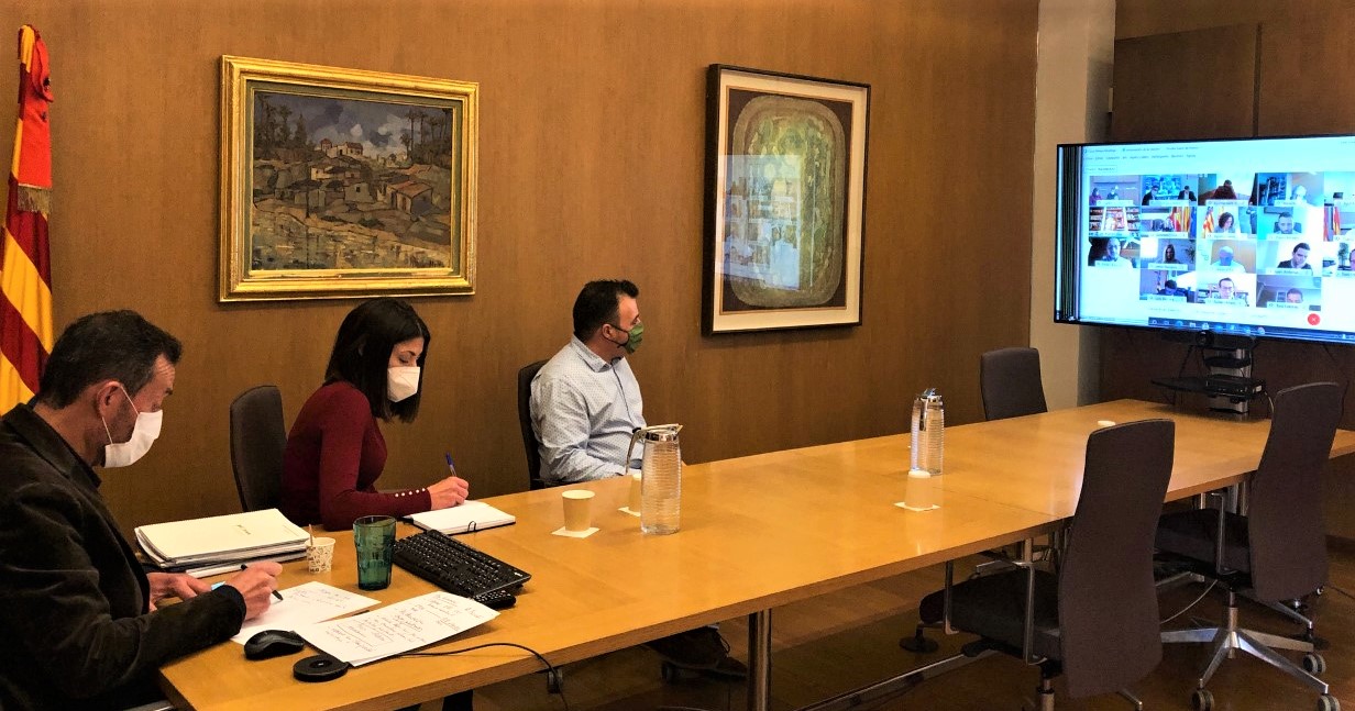 El alcalde, Carlos González, y los concejales de Sanidad, Mariola Galiana, y Seguridad Ciudadana, Ramón Abad, participan en una reunión telemática con el presidente de la Generalitat para abordar el plan de vacunación masiva