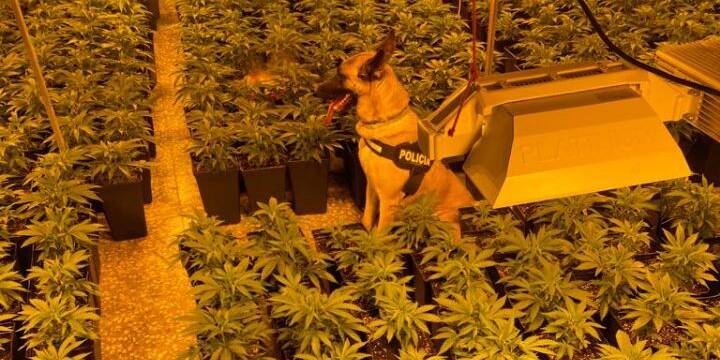 La Policía Local detuvo el pasado domingo, 7 de marzo, a un hombre como presunto autor de un cultivo de un millar de plantas de marihuana en Elche. En la operación participó la Unidad Canina, cuyos agentes observaron, durante su patrullaje, a tres personas salir corriendo de una nave situada en el Pla de San José.