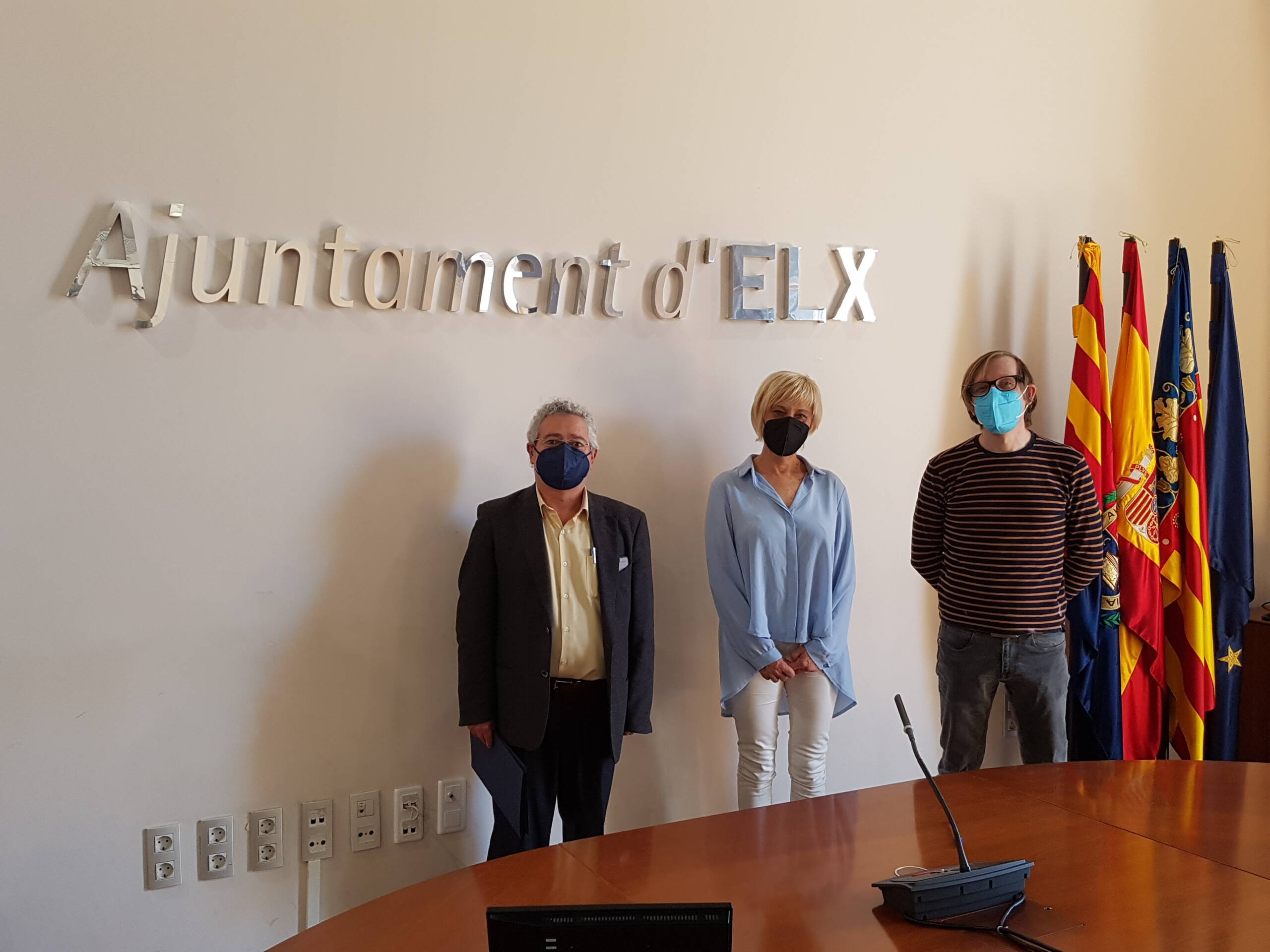El Ayuntamiento impulsa la participación vecinal con la firma del convenio de la Federación de vecinos. Puri Vives, concejala de Participación, Bernardo Sánchez, presidente de la Federación de la Asociación de Vecinos ‘Dama d’Elx’ y José Ignacio Martín, Vicesecretario del Ayuntamiento han firmado esta mañana el convenio.