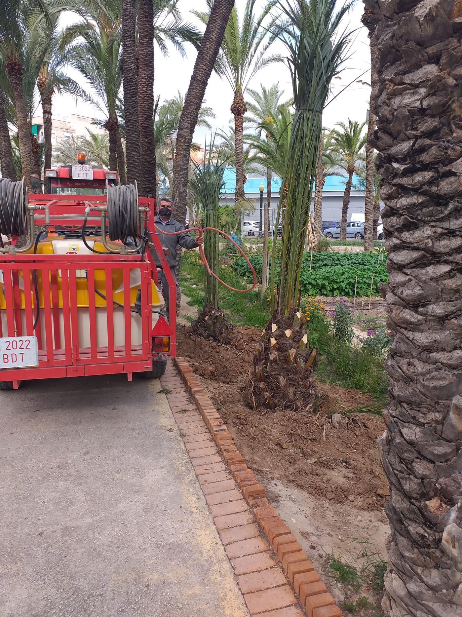 El concejal de Parques y Jardines, Héctor Díez, afirma que “se van a reponer ocho palmeras y se van a plantar ocho más, por lo tanto, se está reforestando este importante huerto de Elche”