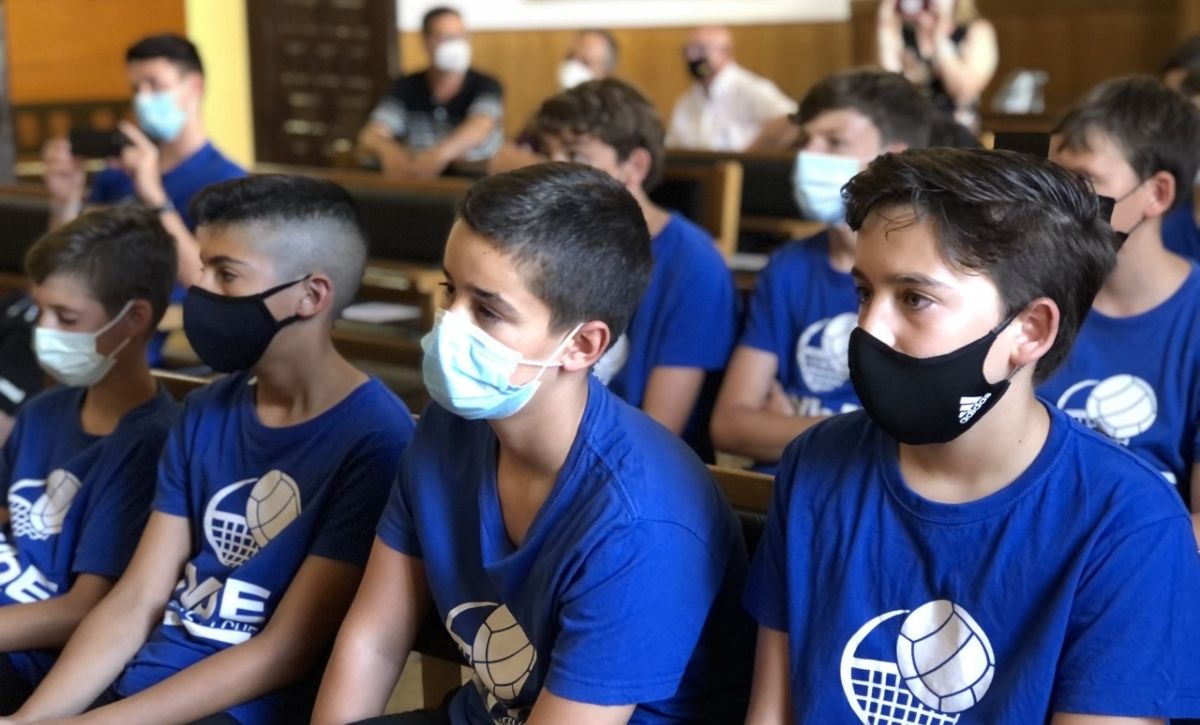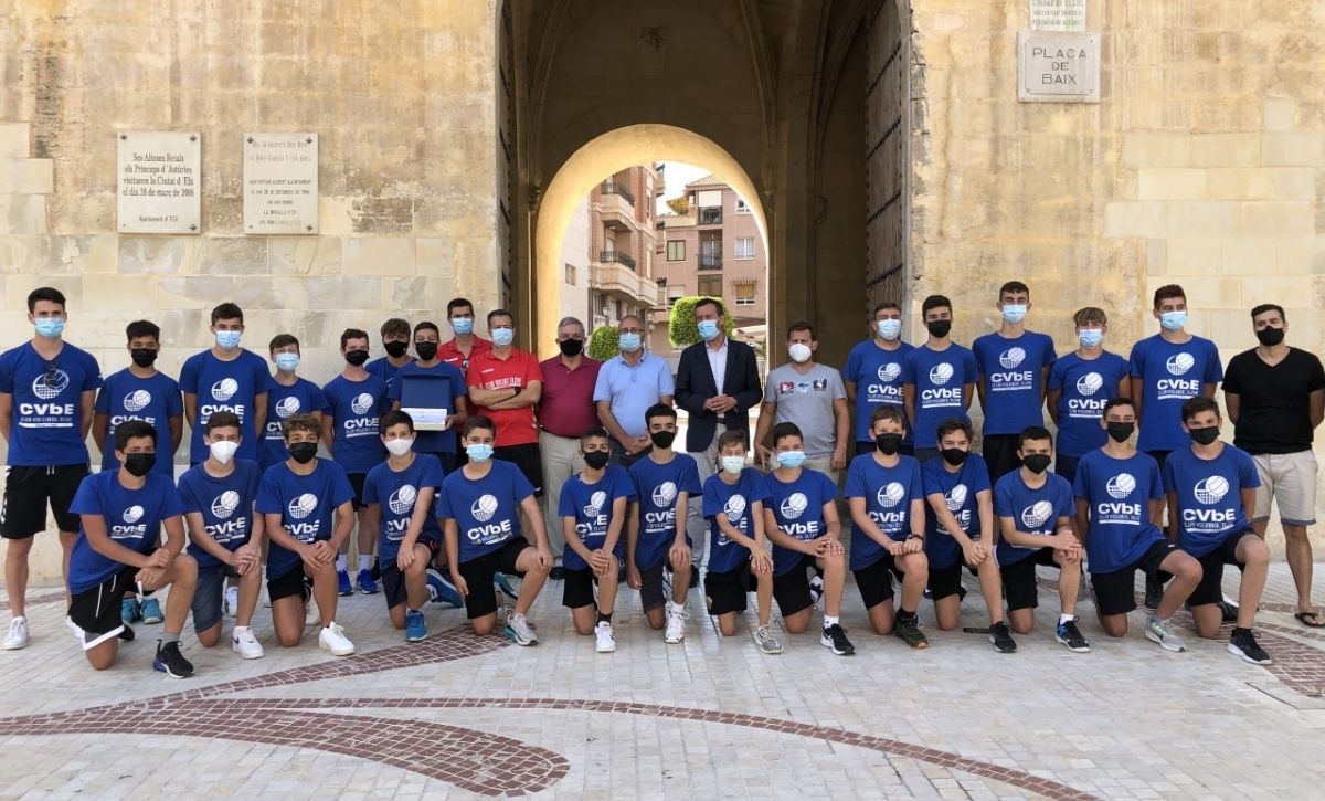 El alcalde de Elche, Carlos González, y el concejal de Deportes, Vicente Alberola, han recibido en el Salón de Plenos del Ayuntamiento al equipo cadete masculino