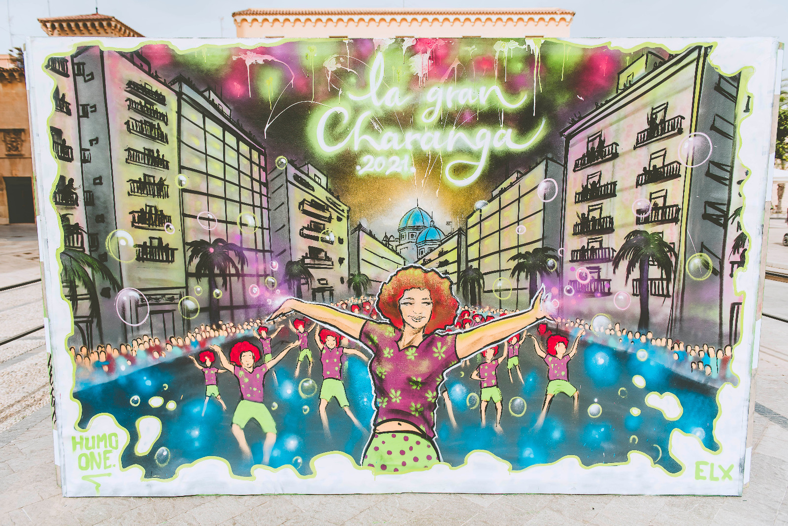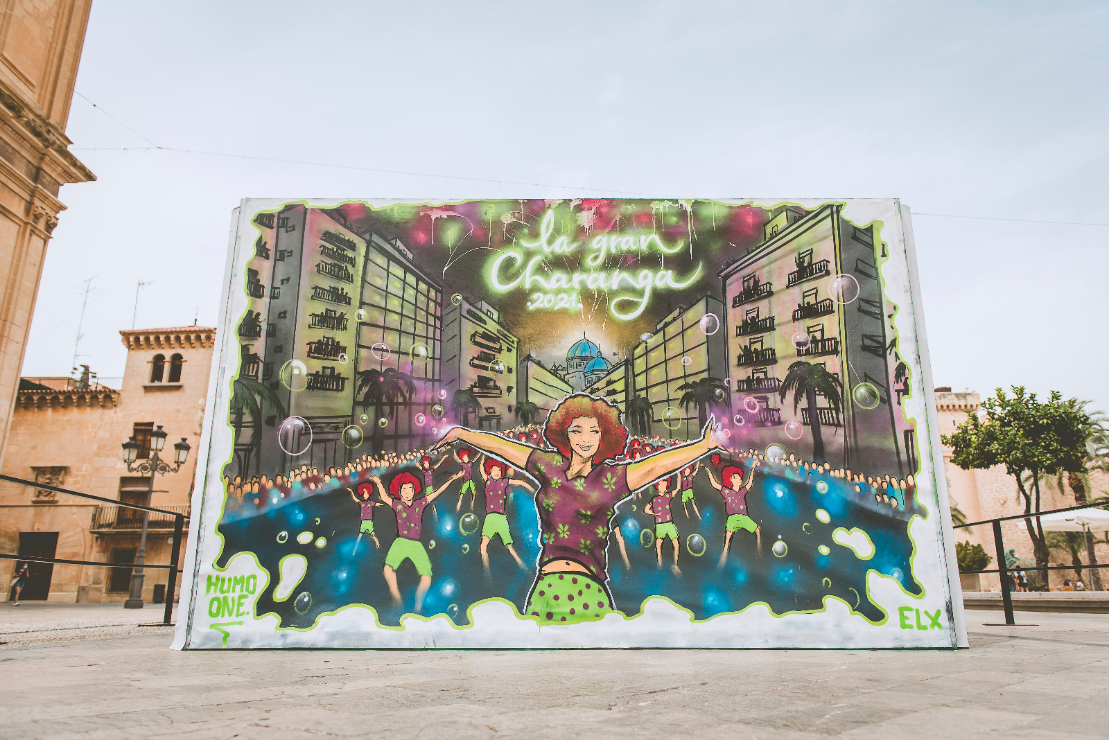 La iniciativa ha contado con la colaboración de la concejalía de Fiestas del Ayuntamiento de Elche y tiene como objetivo mantener vivo el espíritu festero, así como acercar el arte urbano al mundo festivo