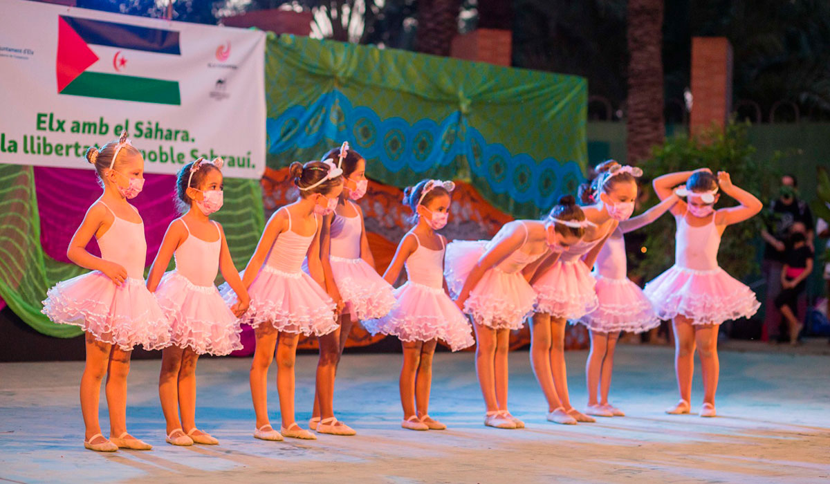 La Rotonda del Parque Municipal acogió la XXX edición del Festival Solidario de Danza. El evento, organizado de forma conjunta por la Concejalía de Cooperación al Desarrollo del Consistorio ilicitano y la Asociación Ayuda al Sahara Occidental Elche, hizo disfrutar a grandes y pequeños con las coreografías que ofrecieron alumnas infantiles de baile ante un más que entregado público compuesto por cerca de cuatro centenares de personas.