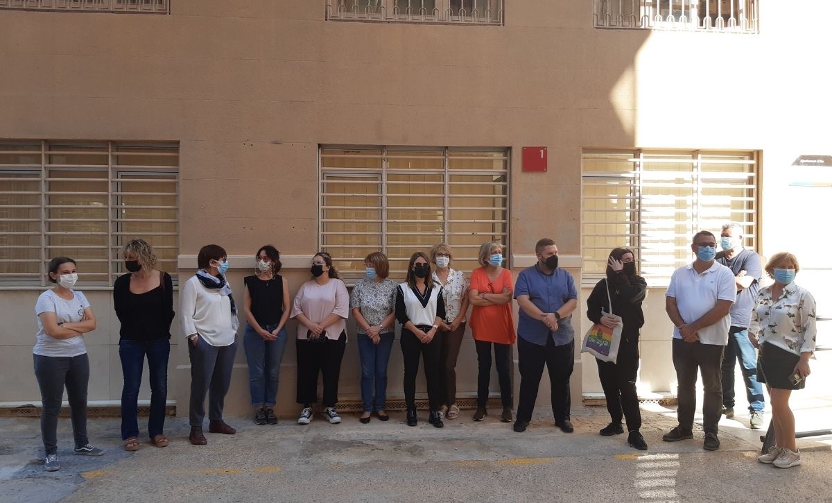 El concejal de Igualdad, Mariano Valera, junto a representantes de UGT-PV y Som Diversitat ha asistido a una concentración en repulsa por la decisión judicial de quitar 11 lotes compuestos por 32 libros sobre temática LGTBI donados por el Ayuntamiento de Castellón a los institutos y al centro sociocultural del municipio tras la denuncia de la asociación Abogados Cristianos.