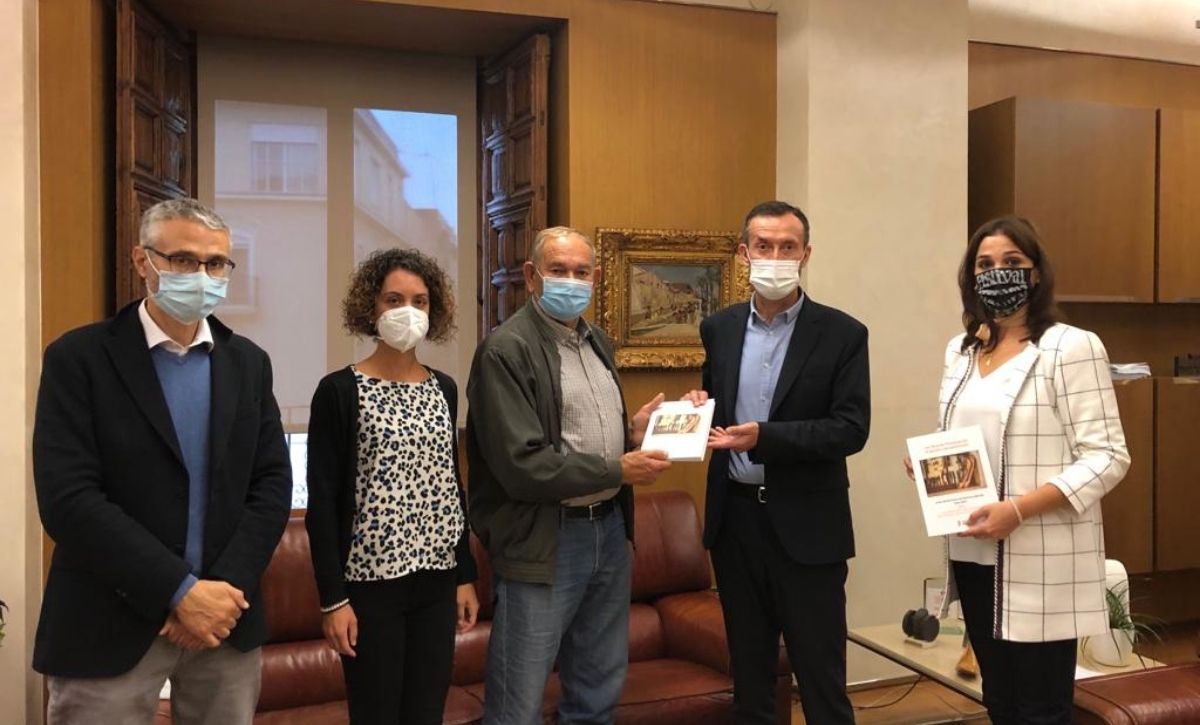 El equipo de Proyecto Puçol, formado por, entre otras personas, el director, Rafael Martínez, la directora del colegio de Puçol, Isabel Picó, y el presidente de la Asociación Museo Escolar de Puçol, José Mora, ha entregado esta mañana al alcalde de Elche, Carlos González, y a la concejala de Cultura, Marga Antón, un libro sobre las buenas prácticas en la gestión del patrimonio que recoge las actas del Encuentro de Patrimonio Mundial que se celebró en Elche en octubre de 2019, con motivo del décimo aniversario del reconocimiento UNESCO del Proyecto Educativo Museístico de Puçol, donde asistieron representantes del Ministerio de Cultura y Deporte, del Institut de Patrimoni Cultural Inmaterial, así como todos los patrimonios valencianos y los otros dos españoles incluidos en el Registro de Buenas Prácticas de la UNESCO.