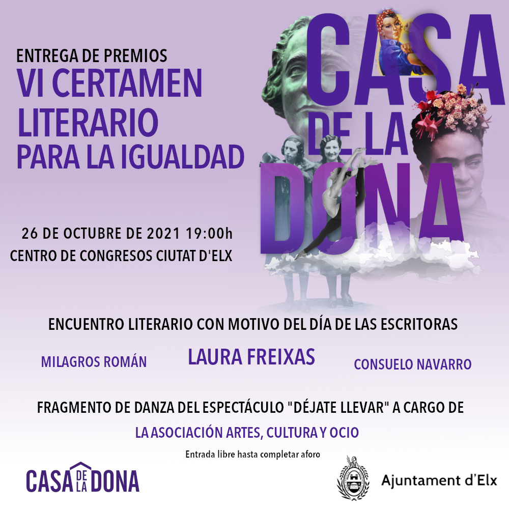 Con motivo del Día de las Escritoras, el encuentro contará con una charla coloquio a cargo de Laura Freixas, presidenta de la Asociación Clásicas y Modernas desde su creación en 2009 hasta enero de 2017, y de las escritoras ilicitanas Milagros Román y Consuelo Navarro.