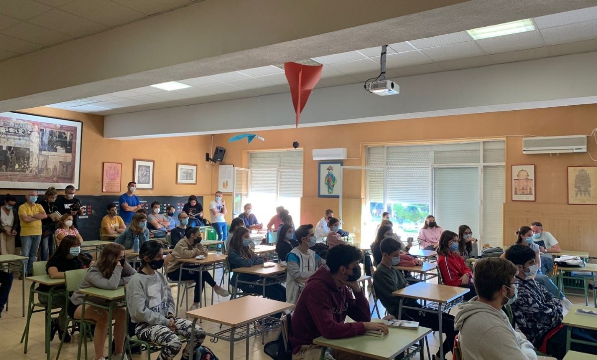 A continuación, se realizó una visita a algunas aulas del instituto decoradas con temas de Europa y para finalizar el alumnado y el claustro de profesores recibieron una charla sobre el aprendizaje de las lenguas y su repercusión del canadiense Lindsay Clanfield “How to learn languages nowadays”, que trabaja como escritor de libros de textos para editoriales y creación de recursos para el profesorado.