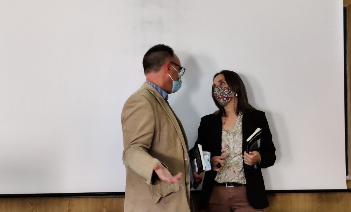 En el acto se presentó el libro «La isla de las sombras» de Ignacio Fernández, profesor de Historia del instituto y se llevó a cabo una charla del canadiense Lindsay Clanfield sobre el aprendizaje de las lenguas y su repercusión