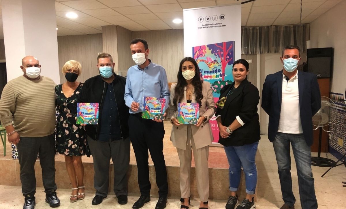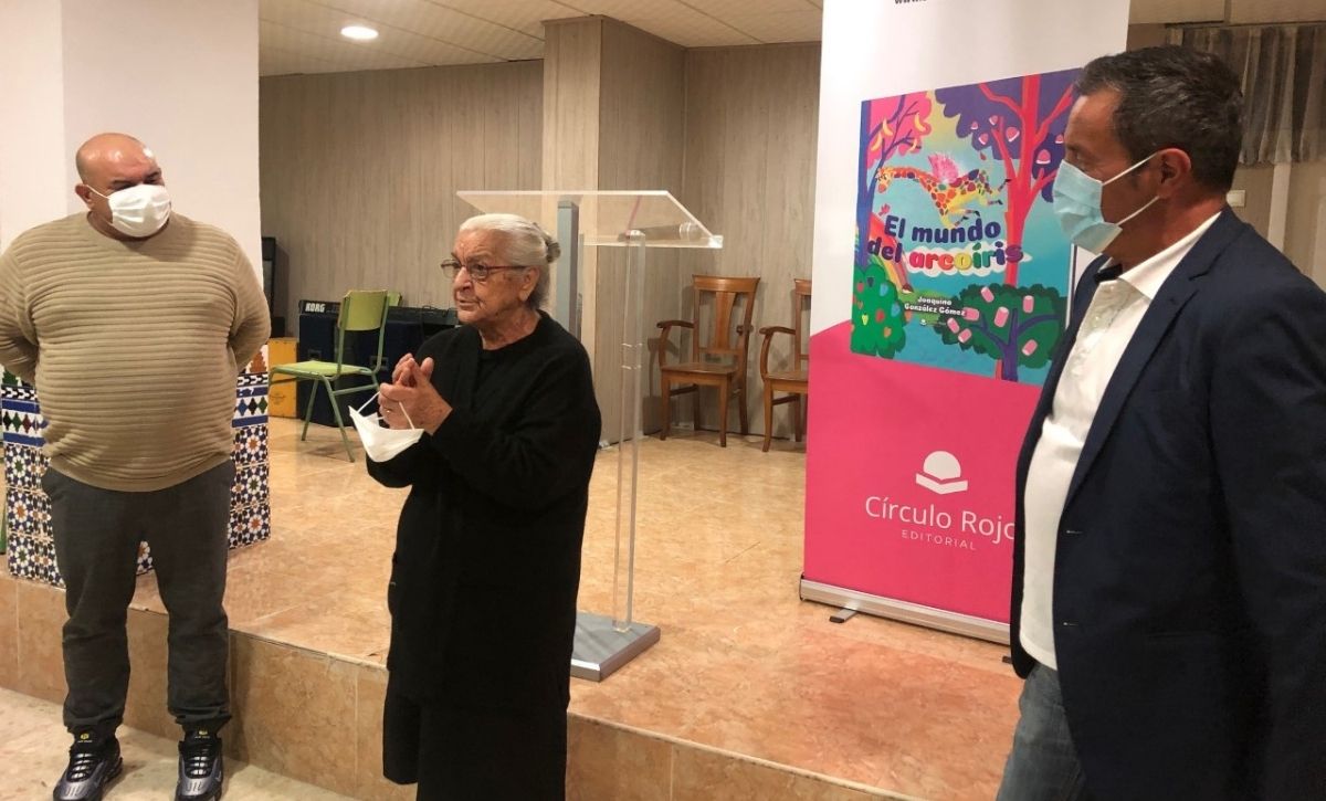 El alcalde, Carlos González, y los concejales de Igualdad, Mariano Valera, y de Participación, Puri Vives, arropan a la escritora en la presentación de “El mundo del arcoíris”, publicación impulsada por la Asociación Santipén Talí
