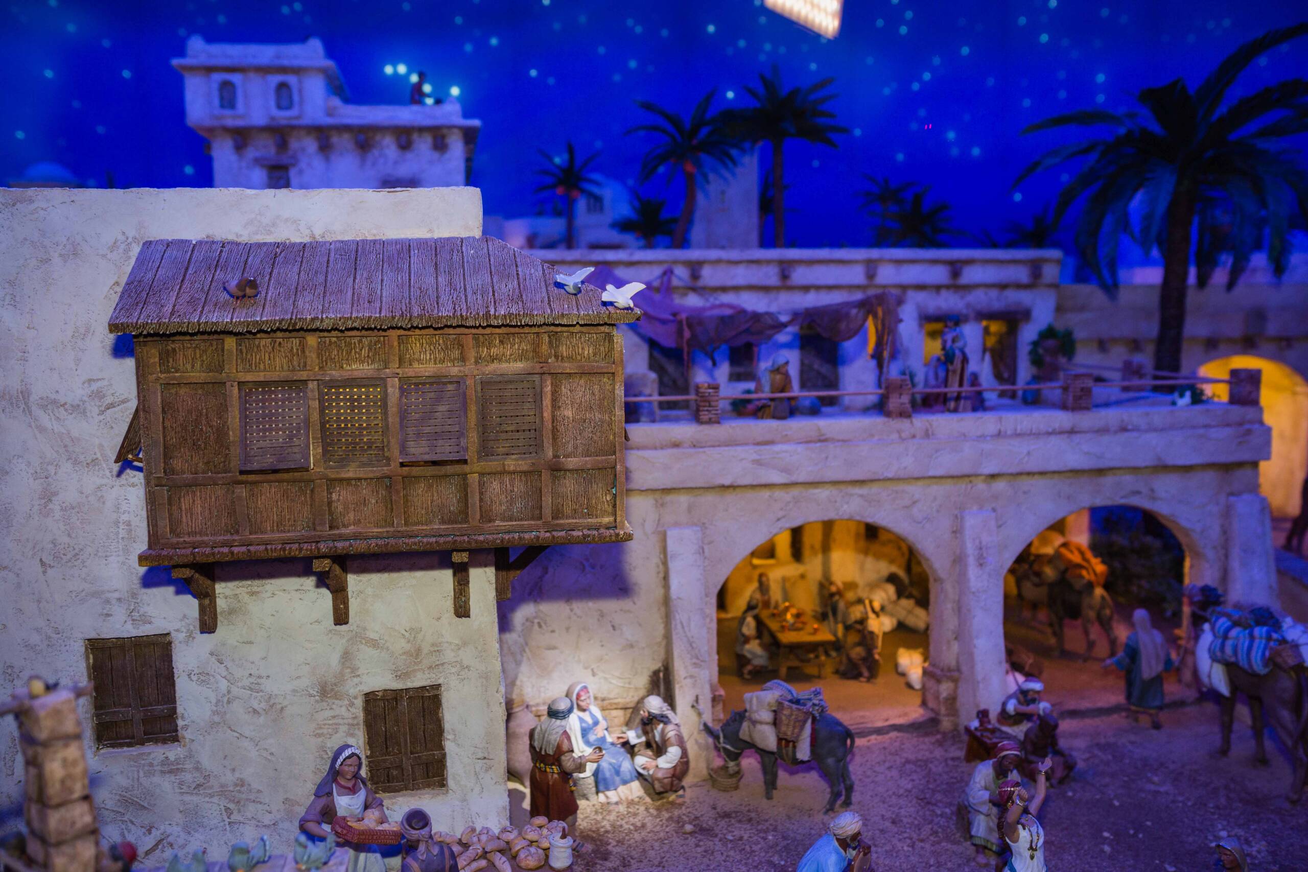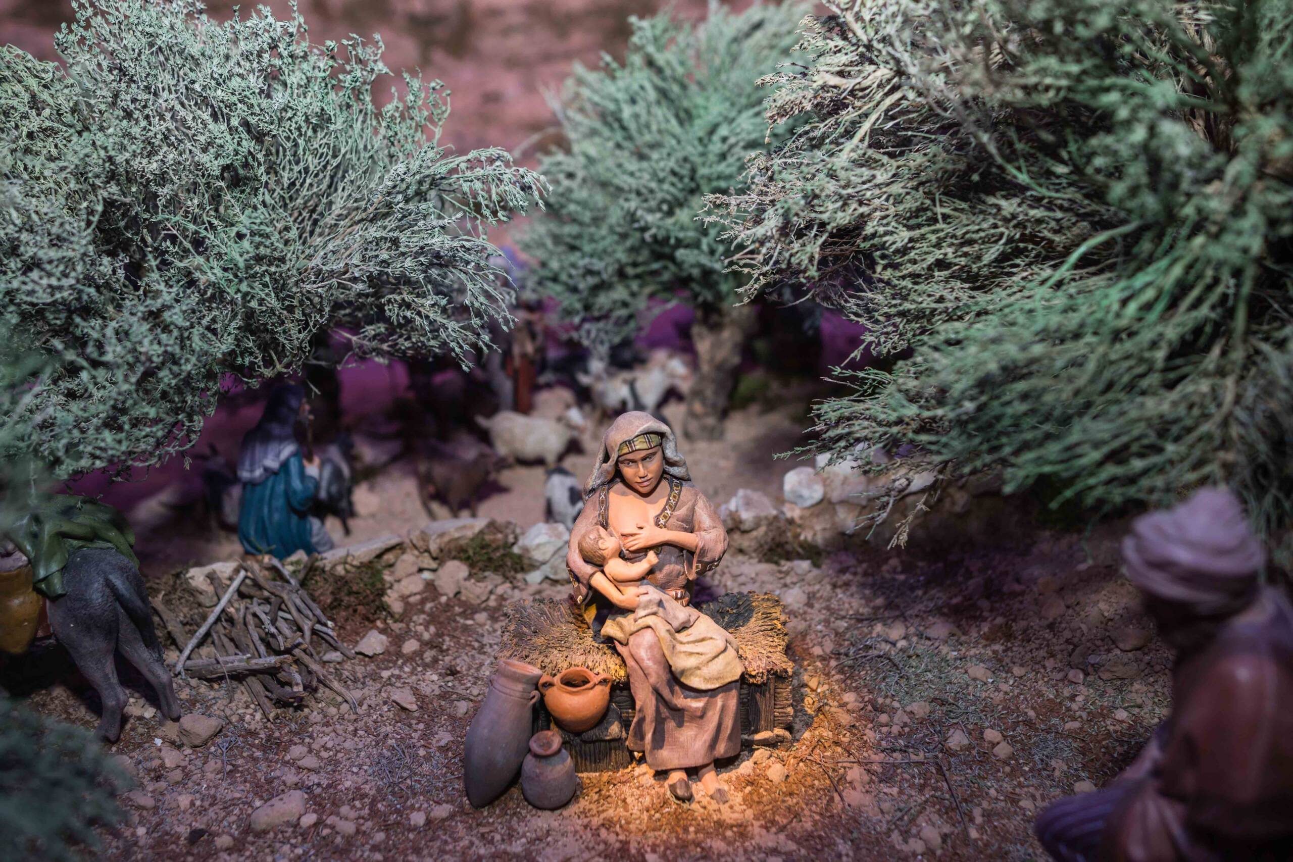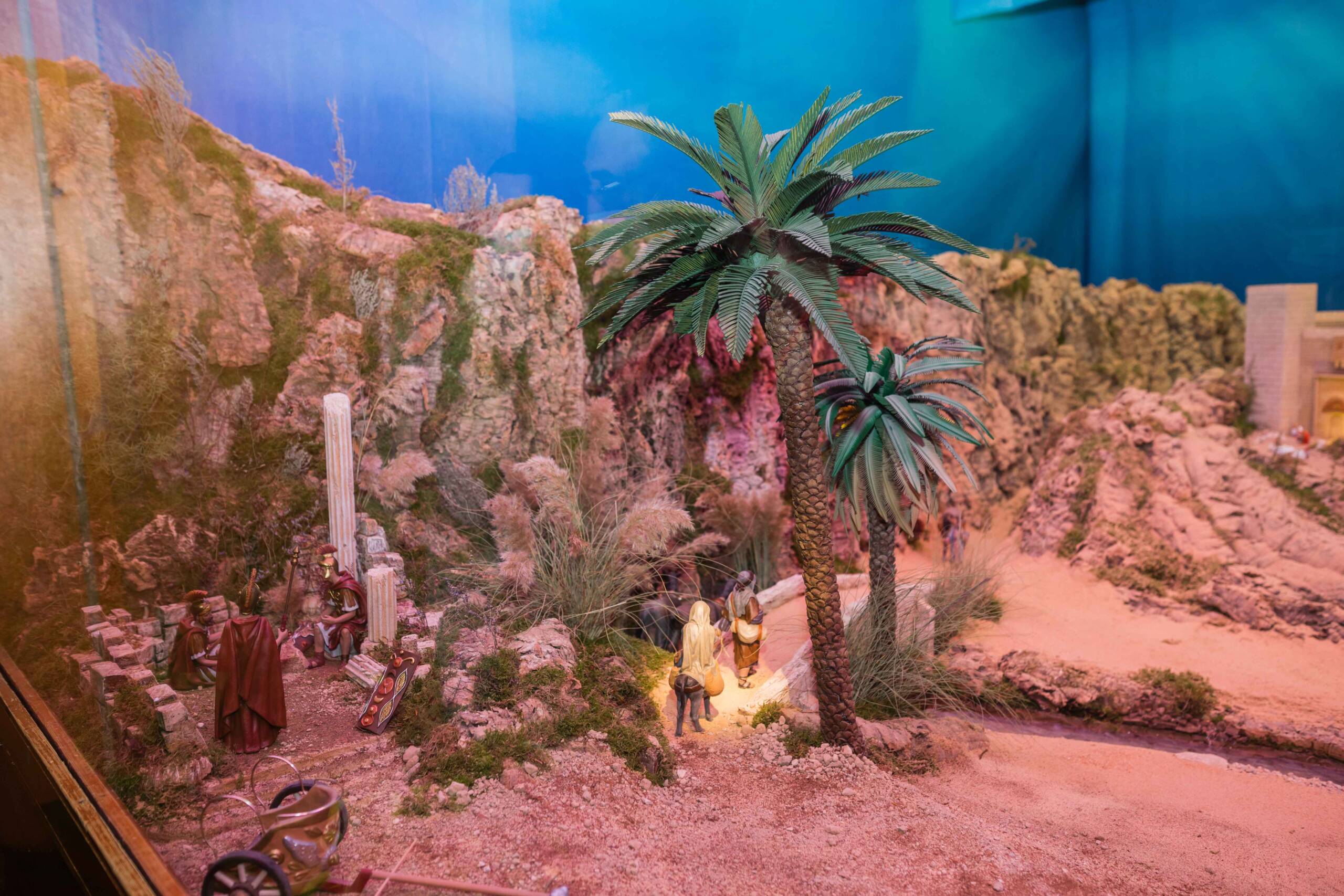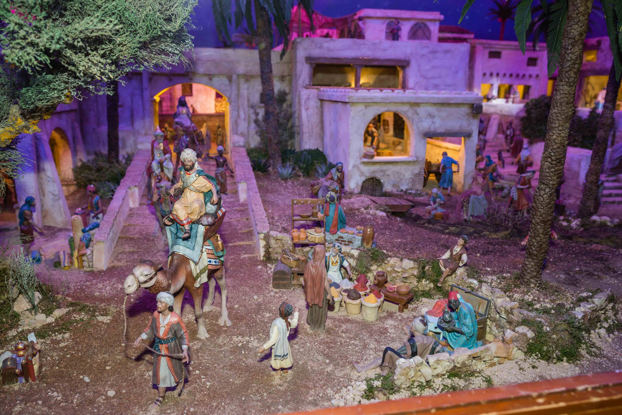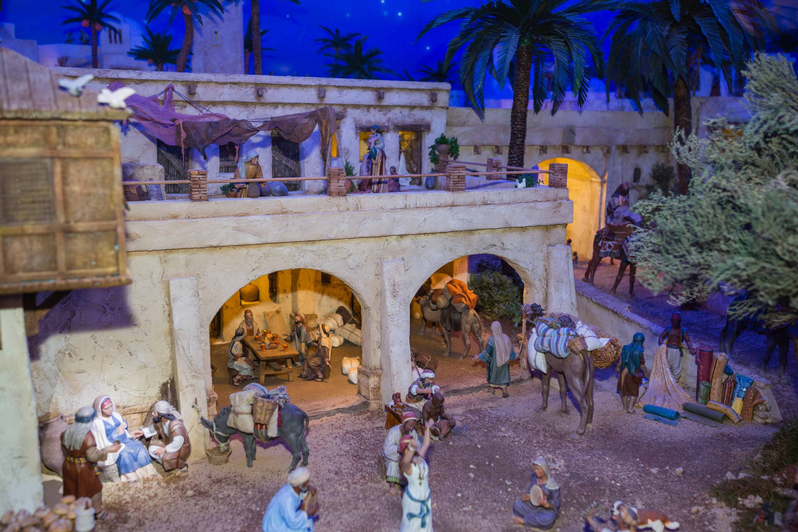 Este año, como novedad, los más pequeños no verán a Francesc Cantó entre las figuras porque estará en la Casa del Belén. No obstante, sí podrán encontrar otras piezas como la Dama de Elche, el peregrino y el caganer. Además, para mejorar la visibilidad del escenario bíblico durante las horas centrales del día se ha instalado unos paneles de madera que dan sombra y evitan los reflejos en el cristal.