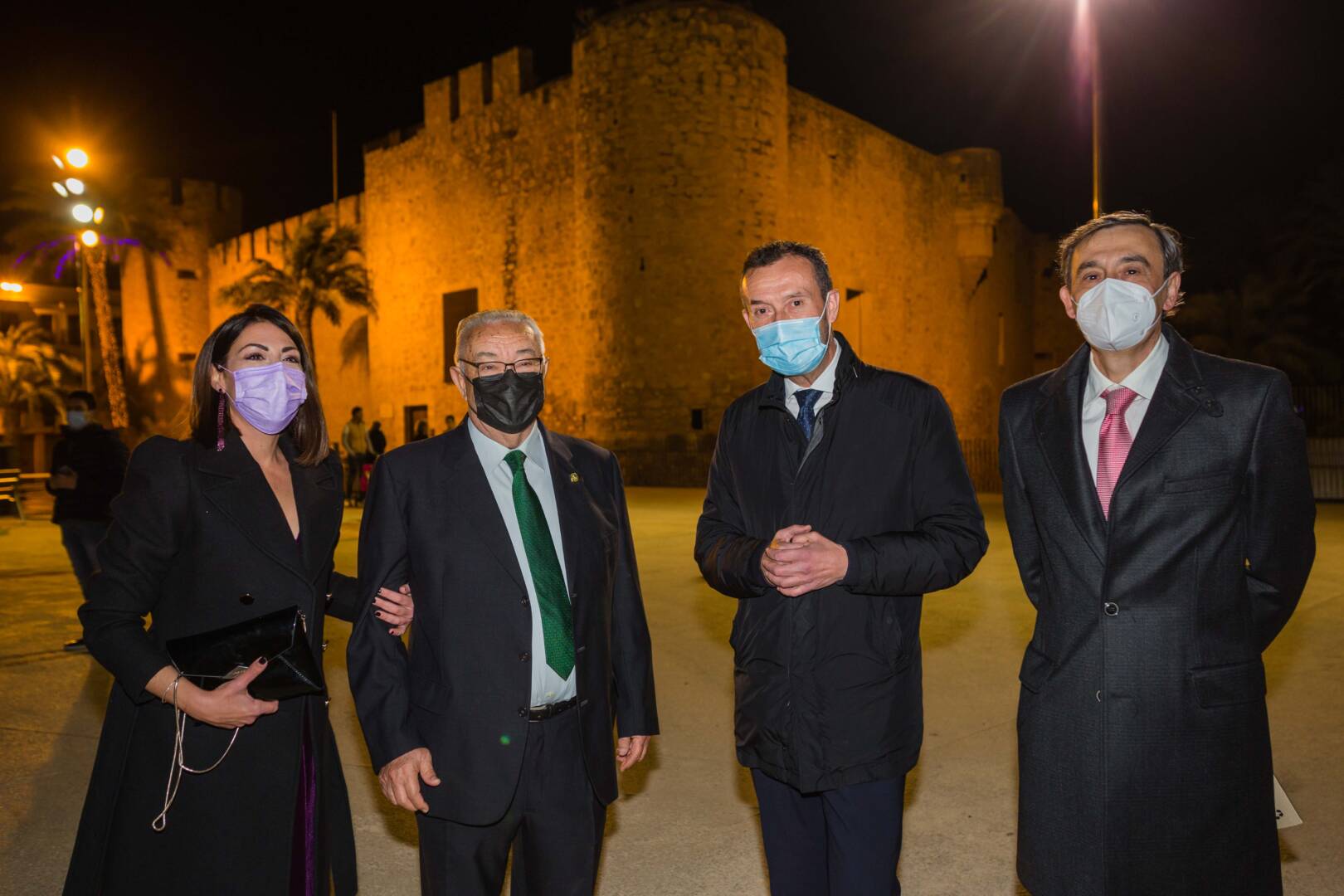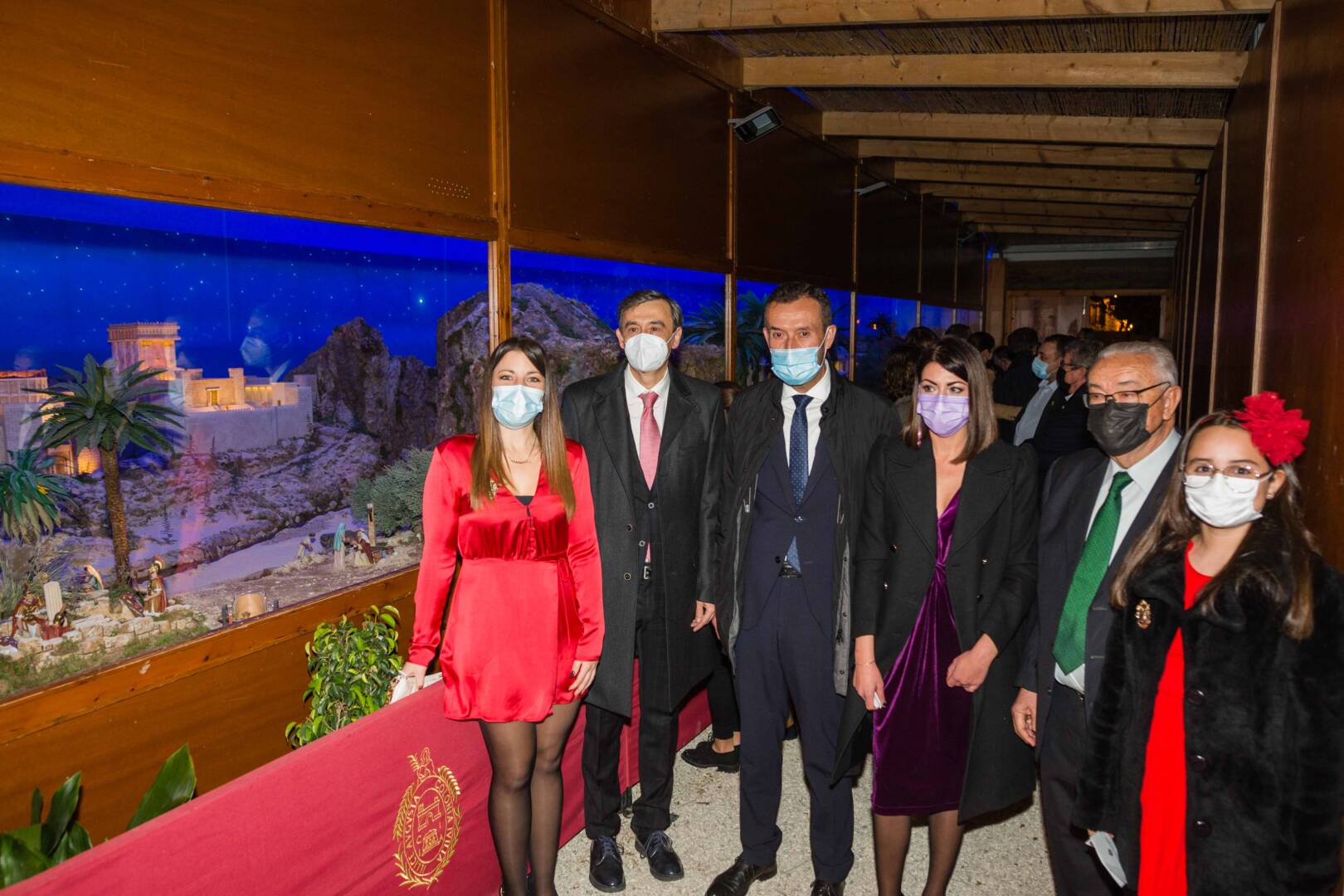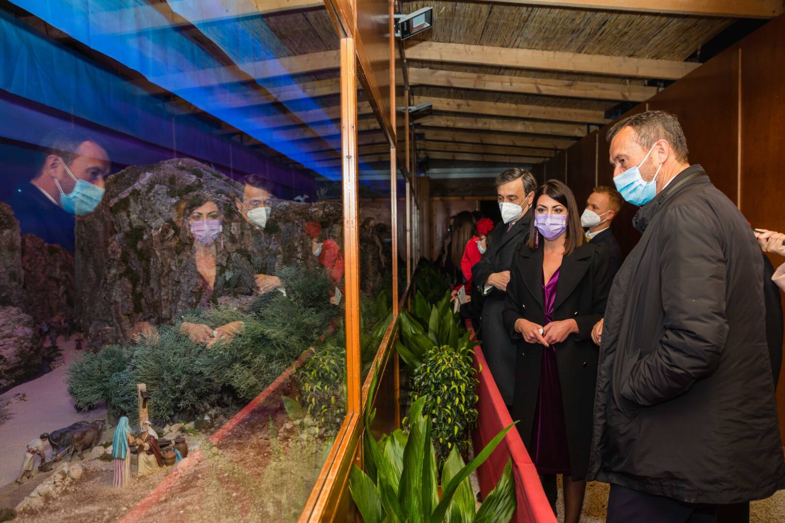 El alcalde, Carlos González, asiste junto a la concejala de Fiestas, Mariola Galiana; el presidente de la Asociación de Belenistas, José Pérez; y el pregonero de la Navidad 2021, el periodista Manolo Alarcón, a la inauguración del nacimiento