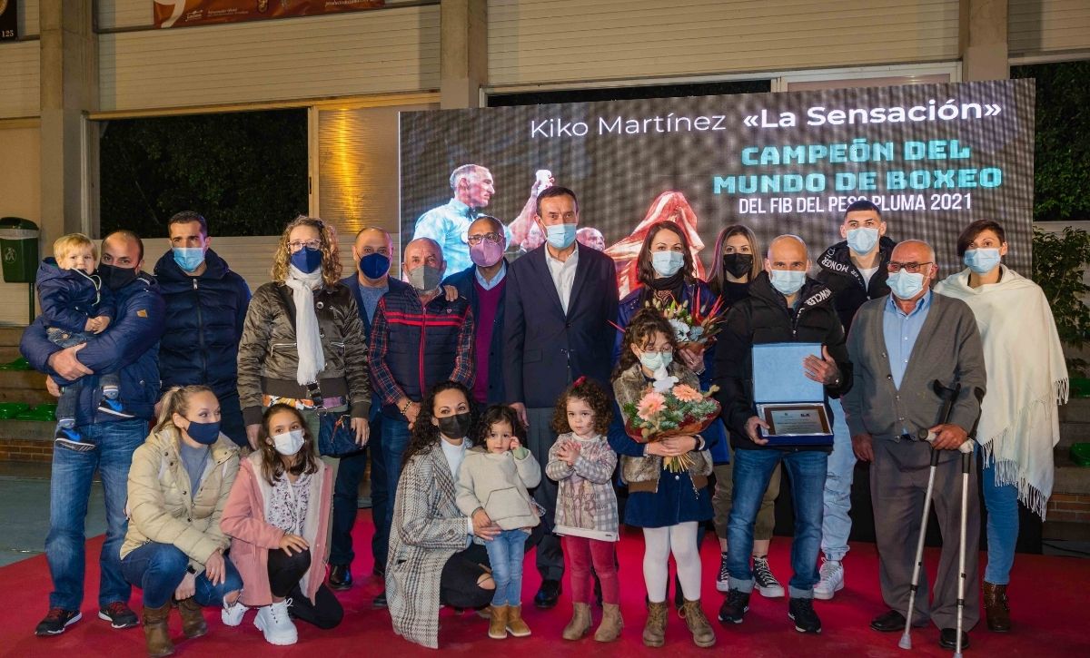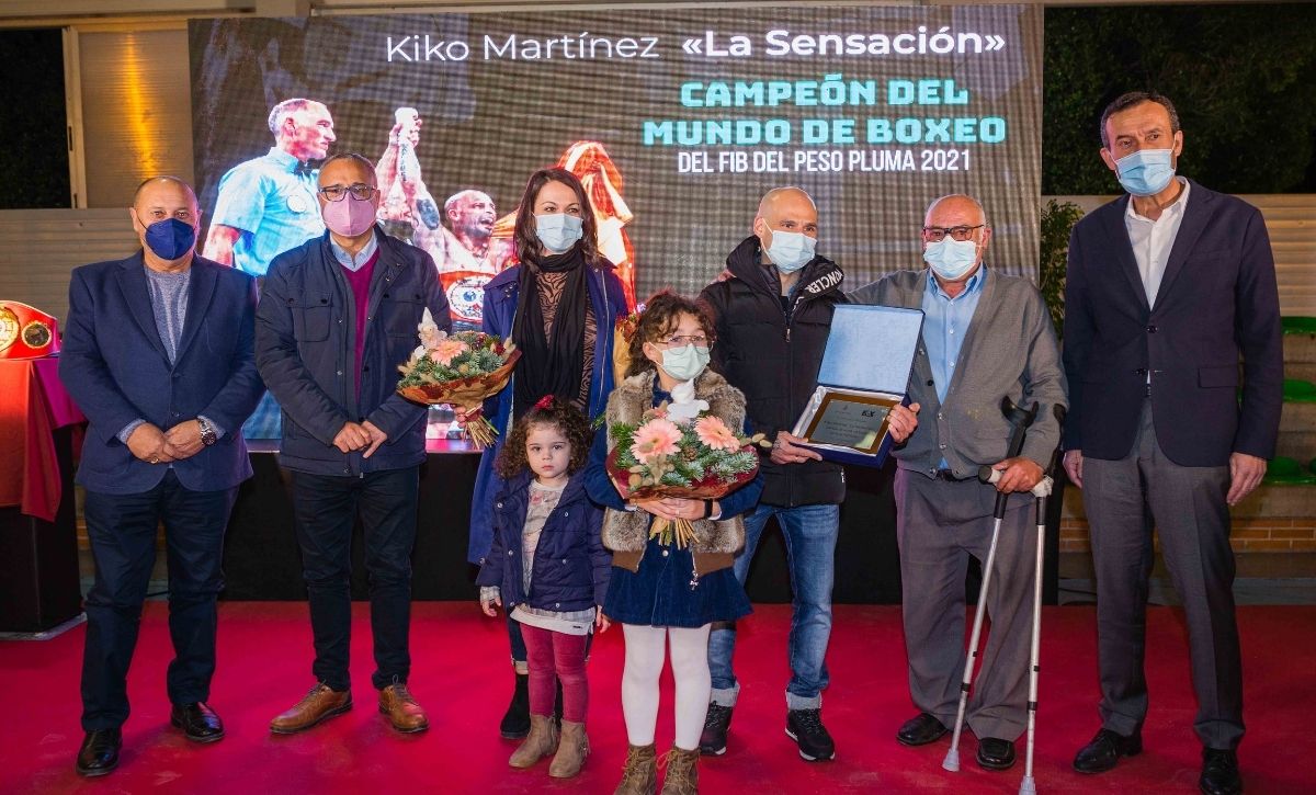 Elche ovacionó al boxeador Kiko Martínez “La Sensación”, campeón del mundo de peso pluma, en el homenaje que recibió en Torrellano, donde reside con su familia. El pabellón del Polideportivo Isabel Fernández fue escenario de un evento organizado por la Concejalía de Deportes, el cual contó con nutrido público presencial y telemático. El acto, en el que Martínez estuvo arropado por allegados y la vecindad de Torrellano, el alcalde, Carlos González, acompañado por el concejal del área, Vicente Alberola, anunció que se dedicará una calle al púgil en la pedanía.