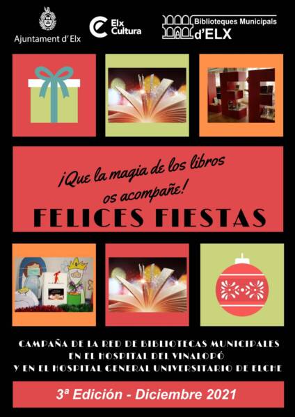 La concejalía de Cultura del Ayuntamiento de Elche, a través de su red de Bibliotecas, ha puesto en marcha por tercer años consecutivo la campaña ´¡Que la magia de los libros os acompañe!` para que todos los niños hospitalizados reciban un lote de libros con motivo de las fiestas navideñas.