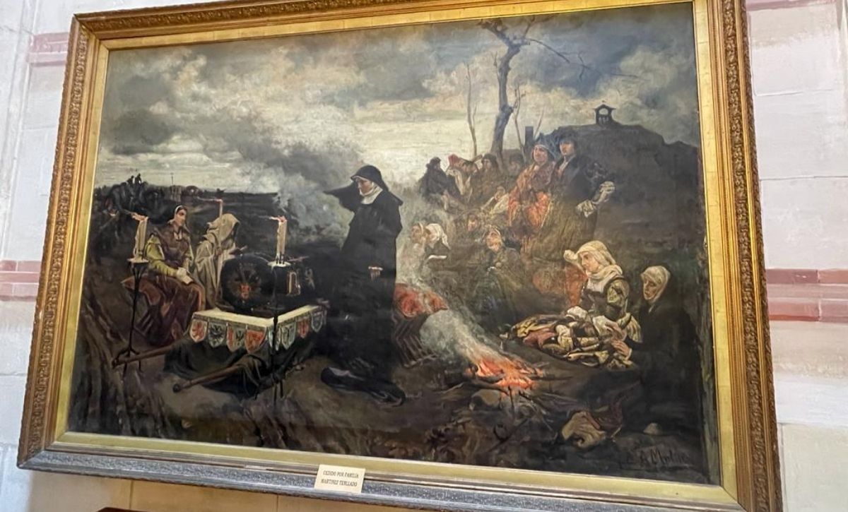El cuadro expuesto, que ha sido restaurado por Gemma Mira, data del año 1885 y es una copia de la obra original que realizó en Roma el pintor Francisco Pradilla