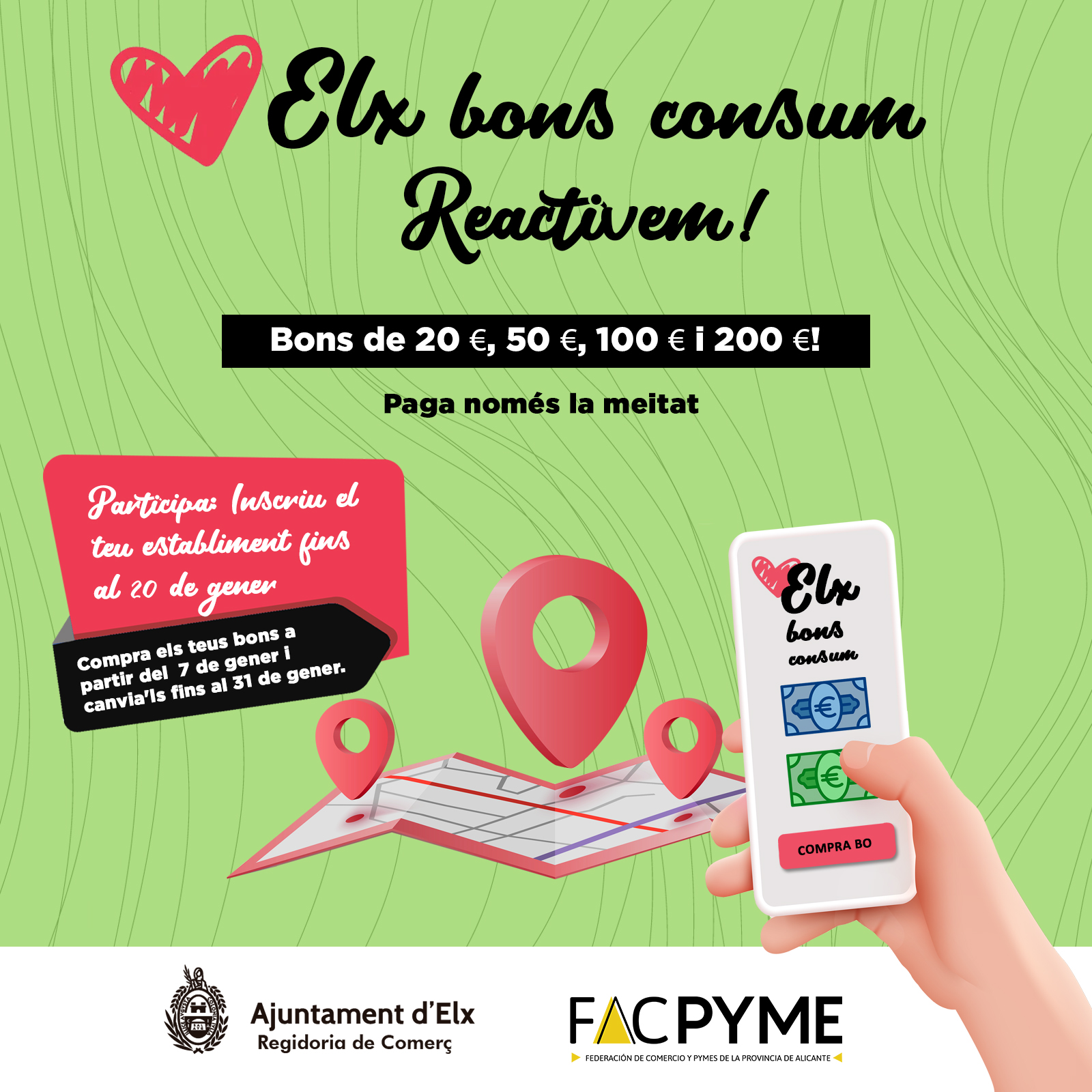 Este martes se volverán a poner a la venta aquellos bonos consumo que finalmente no hayan sido confirmados en su compra por parte de las personas interesadas que los solicitaron. Además, desde la Concejalía de Comercio se han habilitado dos días para la venta de bonos de manera presencial para las personas mayores de 65 años, estos bonos tendrán un valor de 40.000 euros de los cuales la Concejalía aporta la mitad. Esta venta se realizará con asistencia de personal de FACPYME, que ayudará a la realización de la adquisición de los mismos. Los días habilitados son el miércoles 12 y el jueves 13 en horario de 10:00 a 14:00 en el Centro Social Polivalente de Carrús.
