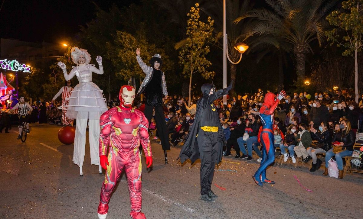 Más de medio millar de personas han hecho posible una majestuosa cabalgata en la que han tenido un papel protagonista los personajes de la saga de Star Wars como Yoda o el simpático R2D2, así como diversos personajes del mundo Marvel como Spiderman o Batman. También han hecho acto de presencia los queridos personajes de Disney como Pinocho, Pepito Grillo o Gepetto. Y junto a ellos, un espectáculo circense con payasos, zancudos, malabaristas, títeres y mágicas hadas. Además, el público ha podido disfrutar de varios bailes y la colaboración especial de la Asociación de Patinadores de Elche que ha ofrecido un espectáculo de acrobacias.