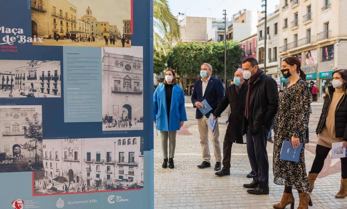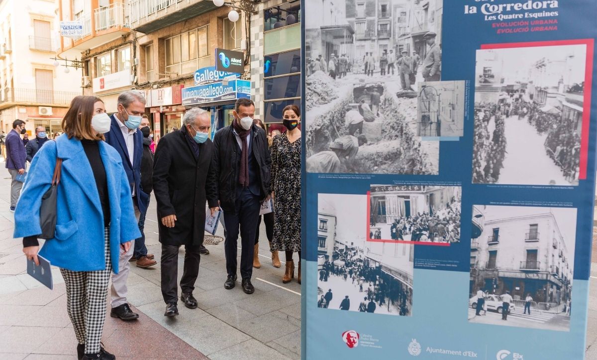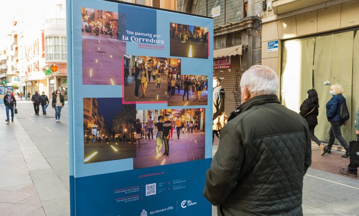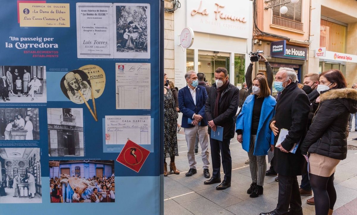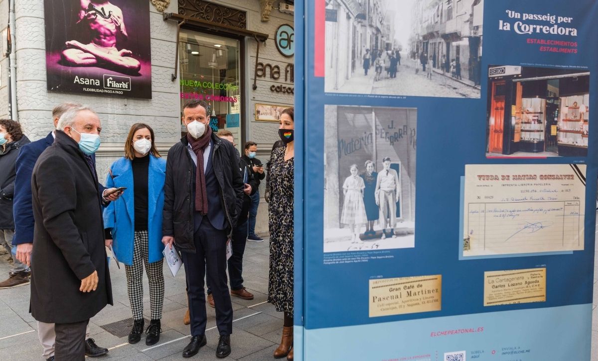 La Corredora continúa erigiéndose como epicentro comercial, cultural y social del casco urbano. El Ayuntamiento y la Cátedra Pedro Ibarra de la Universidad Miguel Hernández (UMH) de Elche han inaugurado esta mañana la muestra fotográfica ‘Un passeig per la Corredora i la Plaça de Baix’, que empleará dichos enclaves urbanos como espacio expositivo hasta el 3 de abril, desde la calle Puente Ortices hasta la antiguamente denominada plaza Mayor.