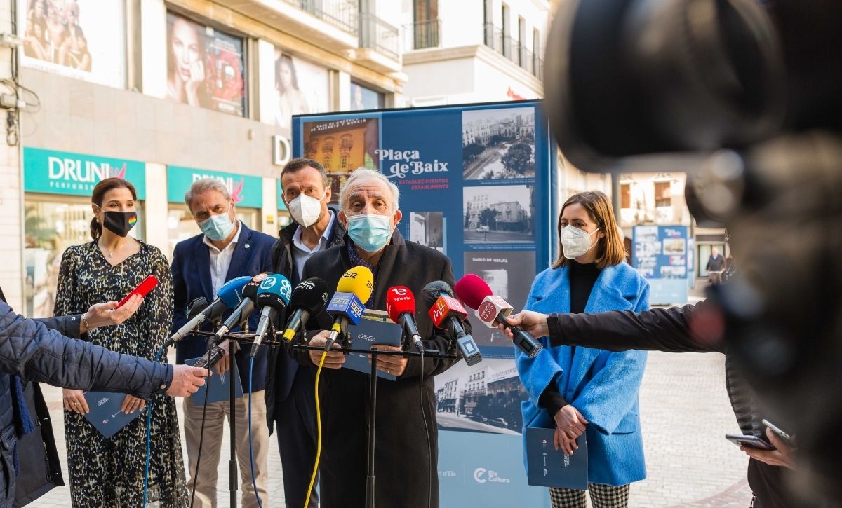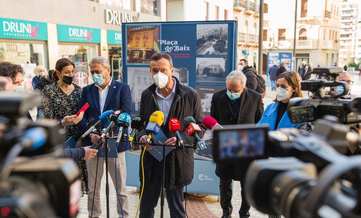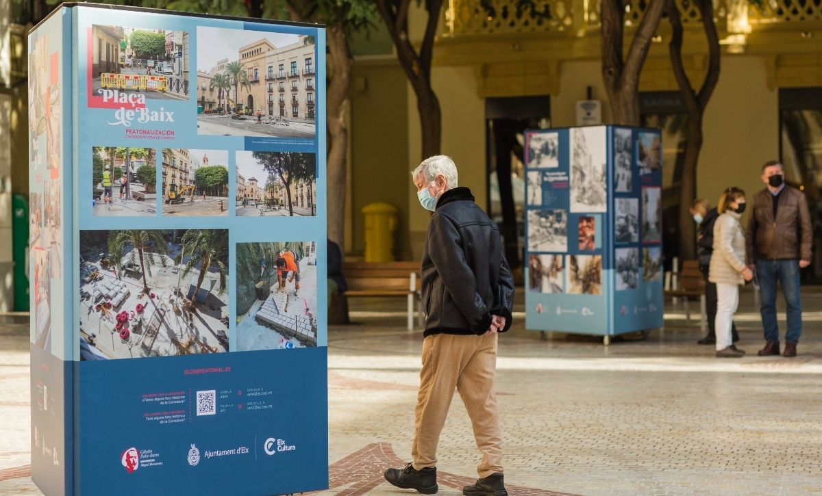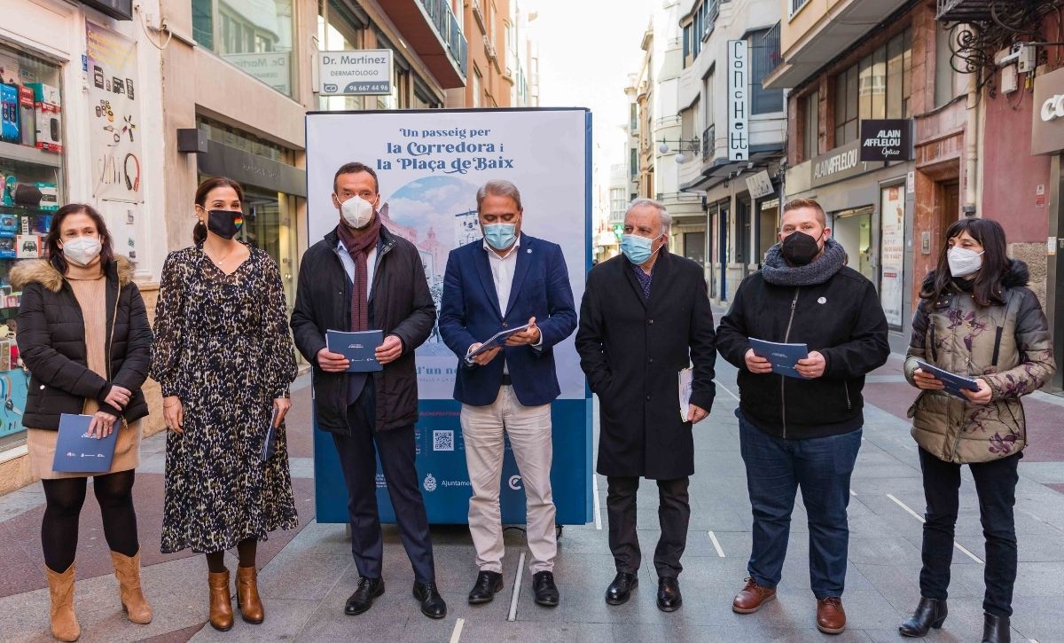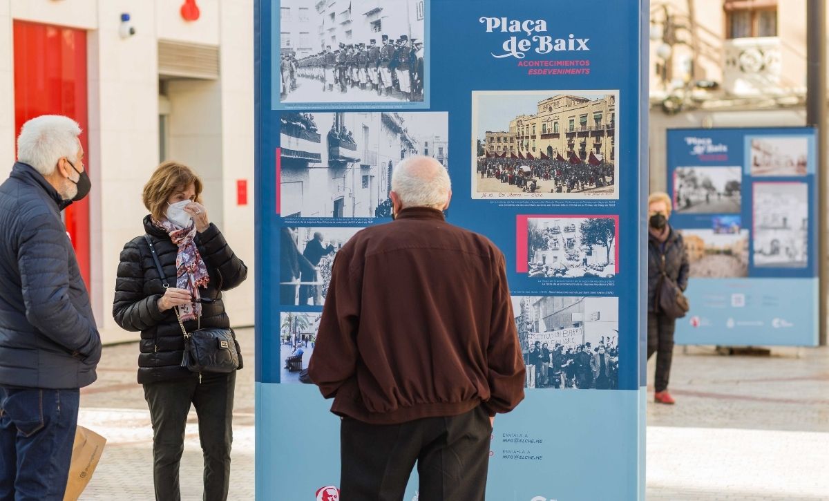 La Corredora continúa erigiéndose como epicentro comercial, cultural y social del casco urbano. El Ayuntamiento y la Cátedra Pedro Ibarra de la Universidad Miguel Hernández (UMH) de Elche han inaugurado esta mañana la muestra fotográfica ‘Un passeig per la Corredora i la Plaça de Baix’, que empleará dichos enclaves urbanos como espacio expositivo hasta el 3 de abril, desde la calle Puente Ortices hasta la antiguamente denominada plaza Mayor.