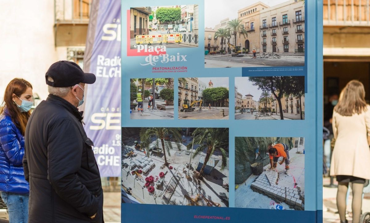 La muestra, comisariada por director de la Cátedra Pedro Ibarra, Miguel Ors, se compone de 17 soportes a tres caras instalados a lo largo de la vía y de la Plaça de Baix, un año después de la renovación de ambos espacios