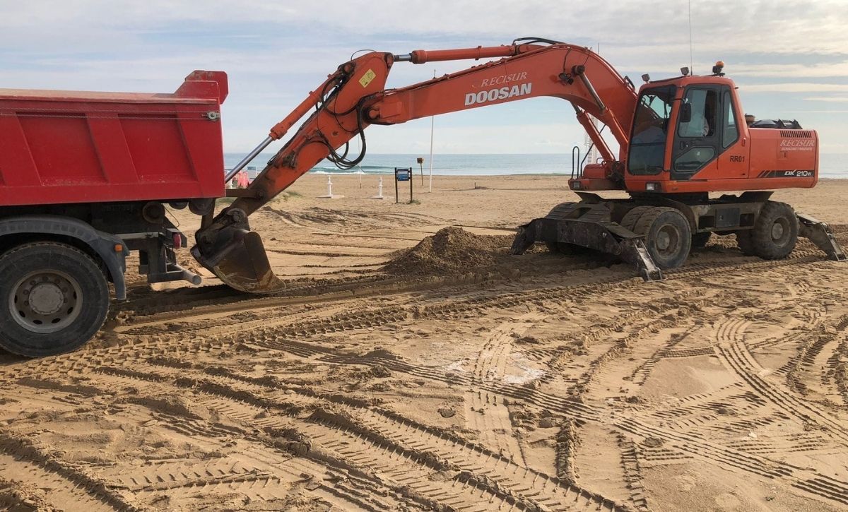 La Dirección General de la Costa y el Mar extrae arena de la playa del Altet para la capa superficial del hueco del terreno donde se asentaba el inmueble