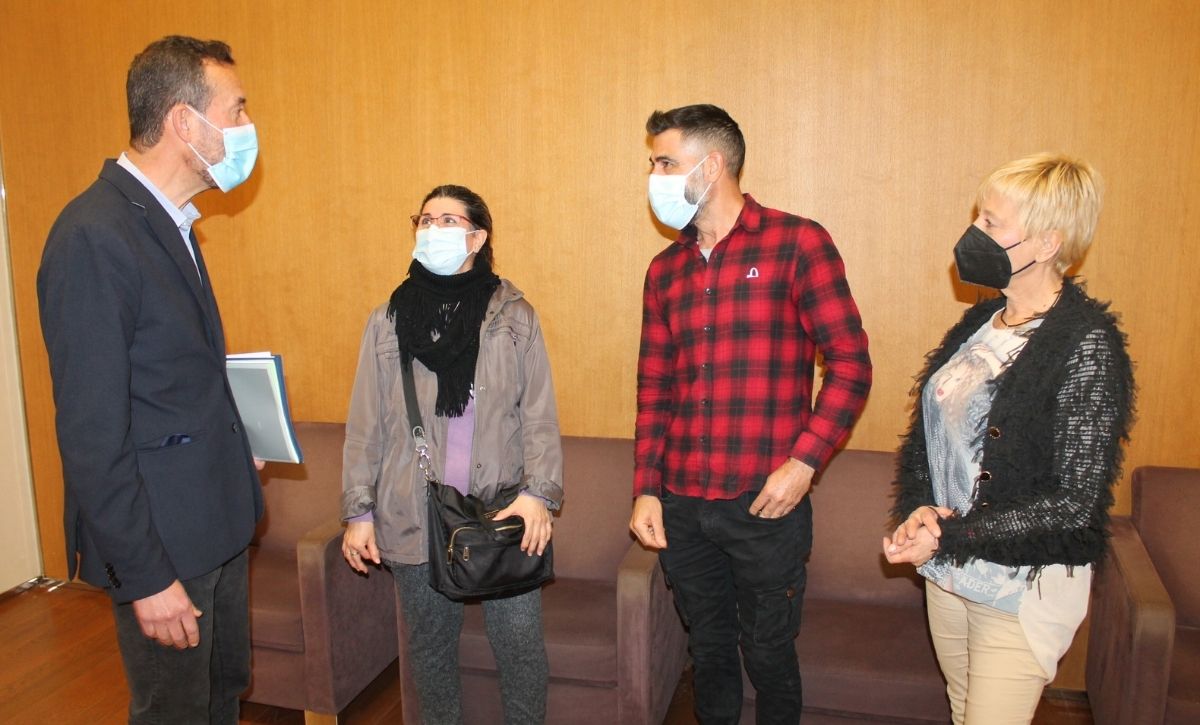 El alcalde, Carlos González, y los ediles de Participación, de Urbanismo y de Modernización del Espacio Público, Puri Vives, Ana Arabid y Héctor Díez, respectivamente, se han reunido a mediodía en el Ayuntamiento con el presidente de la Asociación de Vecinos Porfirio Pascual, Juan Antonio Curiel, y la vocal de la entidad Teresa Ripoll para informarles de los planes del Gobierno Municipal para la rehabilitación integral del barrio, situado en Carrús, por unos 8 millones procedentes de los fondos europeos Next Generation.
