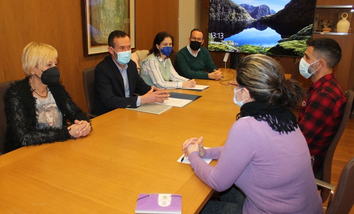 Carlos González, y los ediles Puri Vives, Ana Arabid y Héctor Díez, explican al presidente de la entidad, Juan Antonio Curiel, y a la vocal Teresa Ripoll los planes del Gobierno municipal al respecto, valorados en unos 8 millones de euros